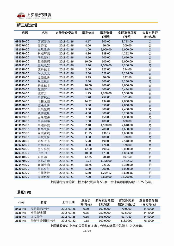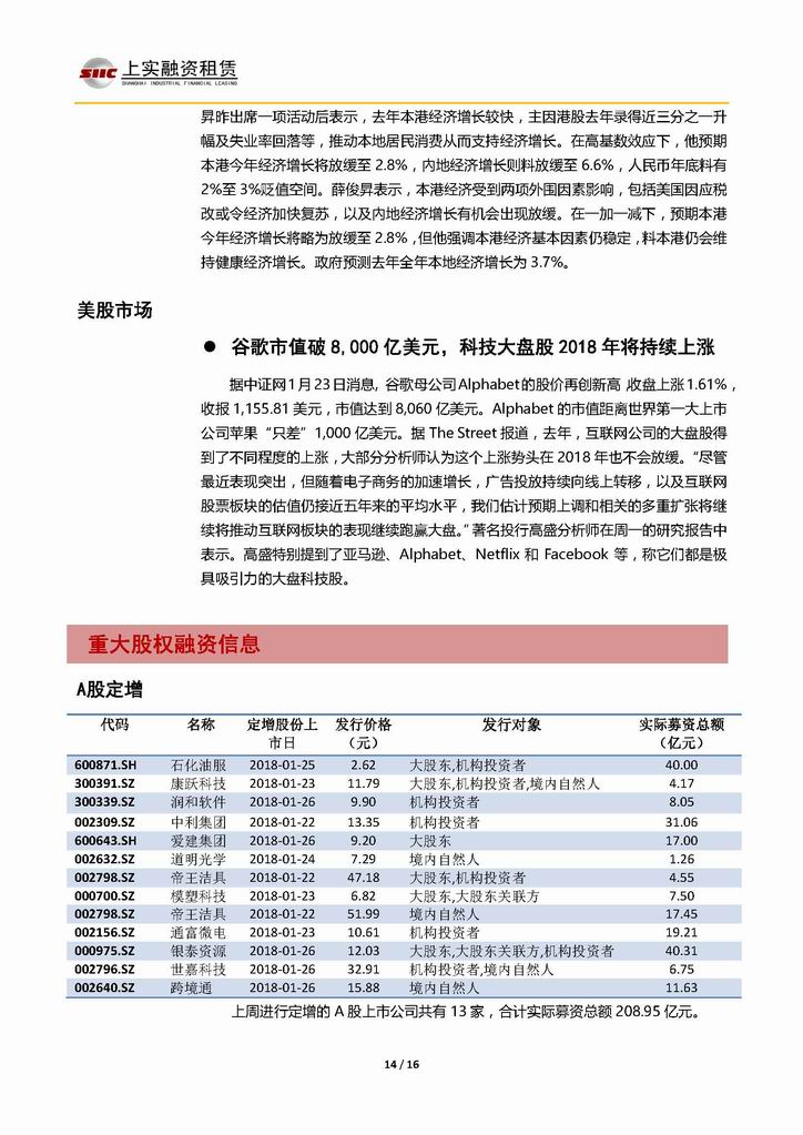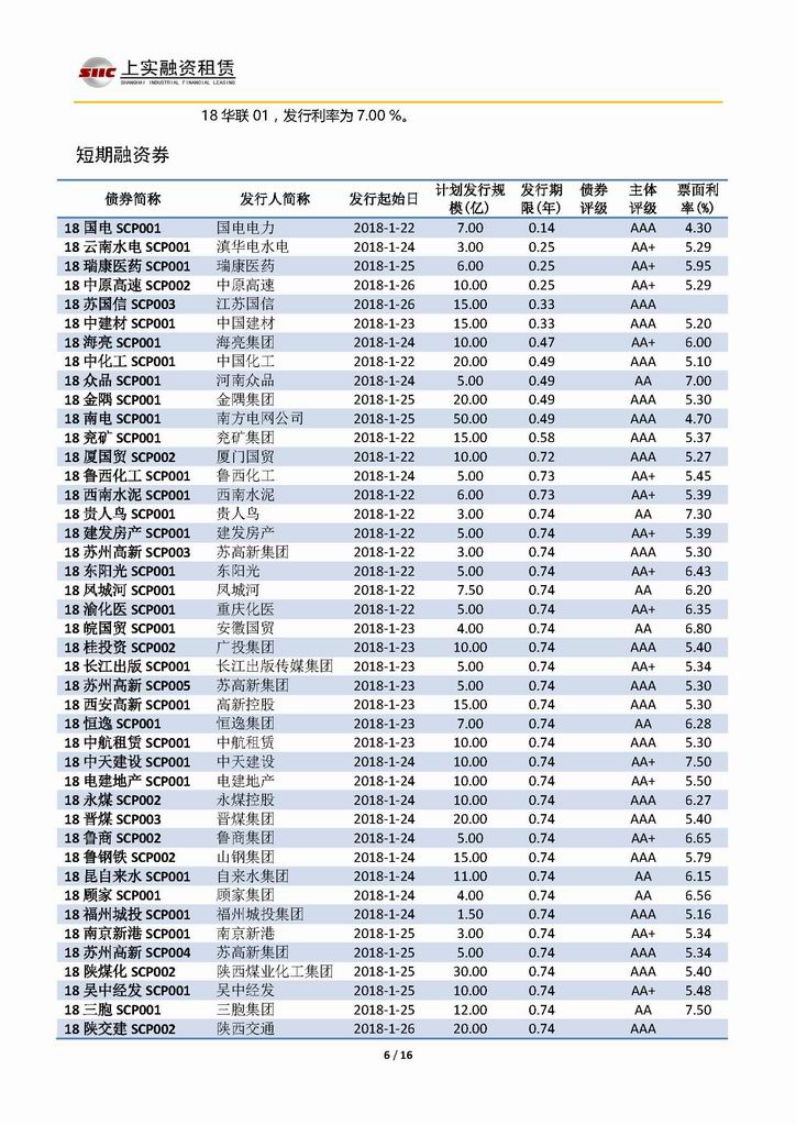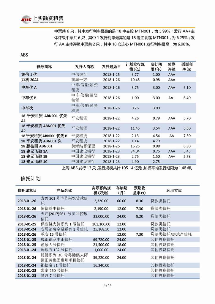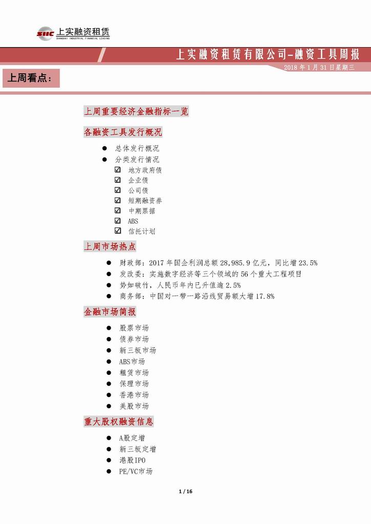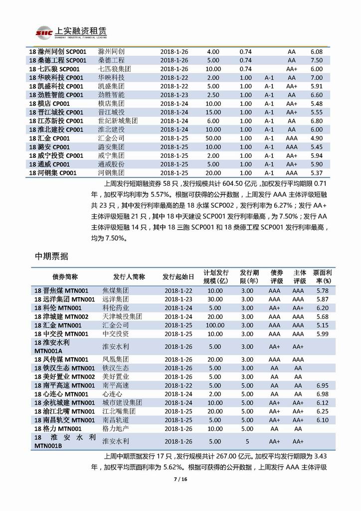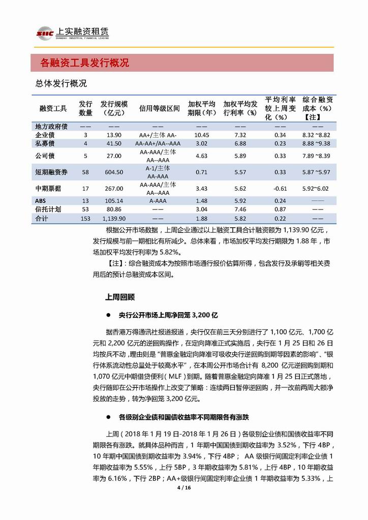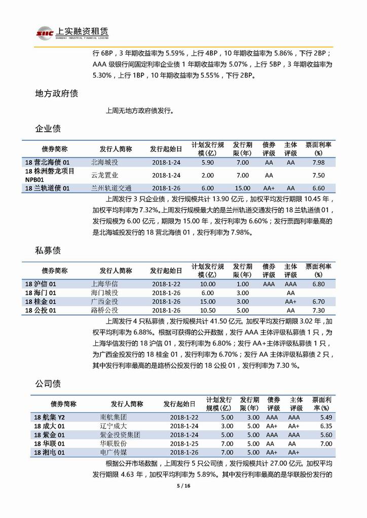 | 當(dāng)前位置:新聞中心 > 上實(shí)-融資工具周報(bào)20180119-20180126 | |||||