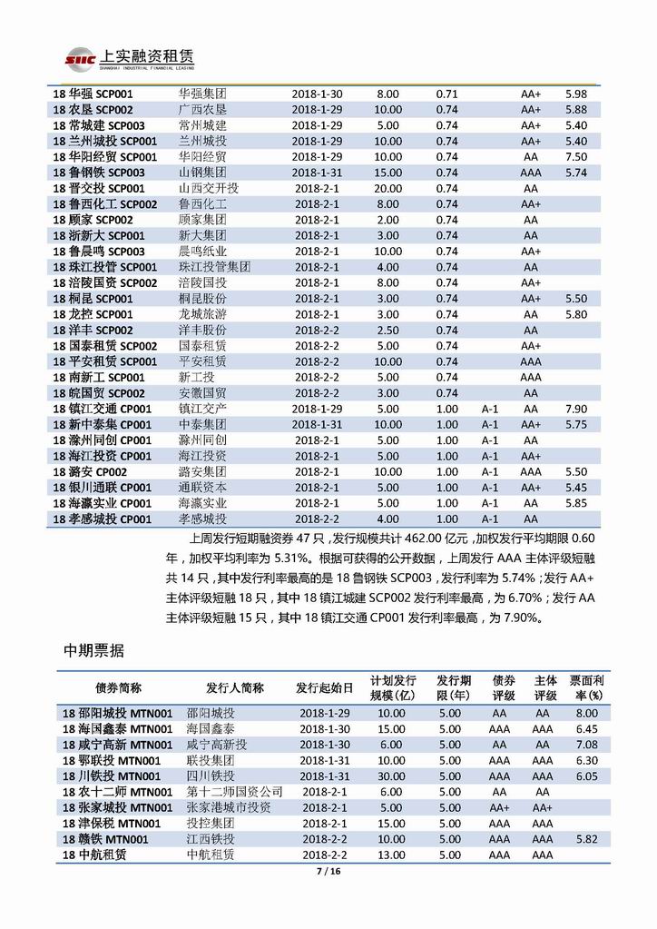 | 當(dāng)前位置:新聞中心 > 上實-融資工具周報20180126-20180202 | |||||