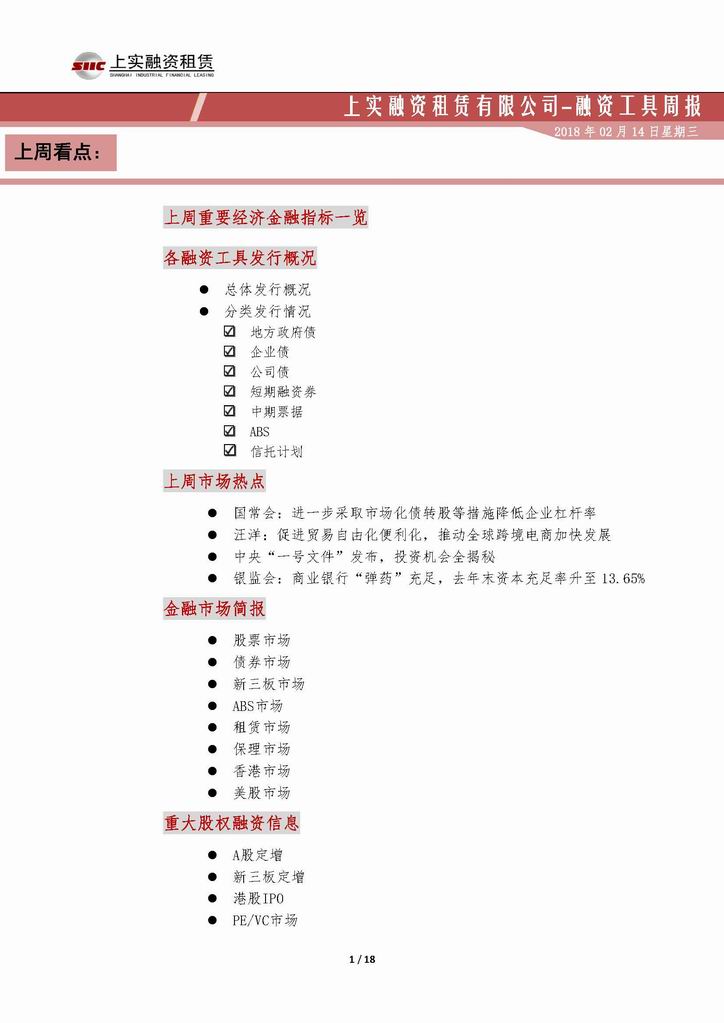 | 當(dāng)前位置:新聞中心 > 上實(shí)-融資工具周報(bào)20180202-20180209 | |||||
