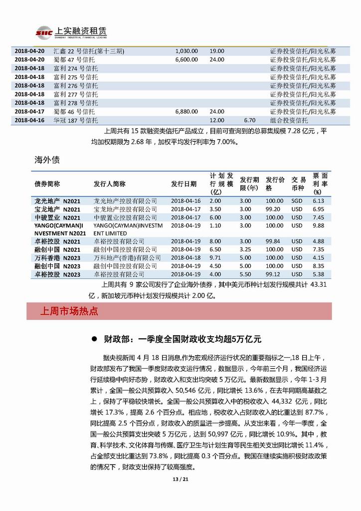 | 當(dāng)前位置:新聞中心 > 上實(shí)-融資工具周報(bào)20180413-20180420 | |||||