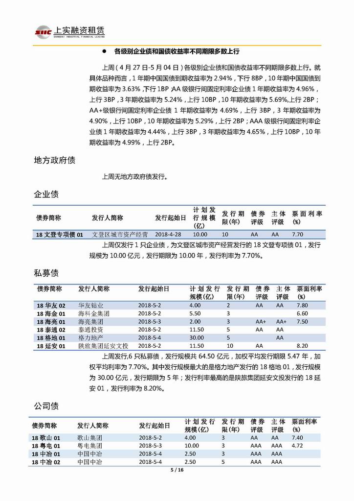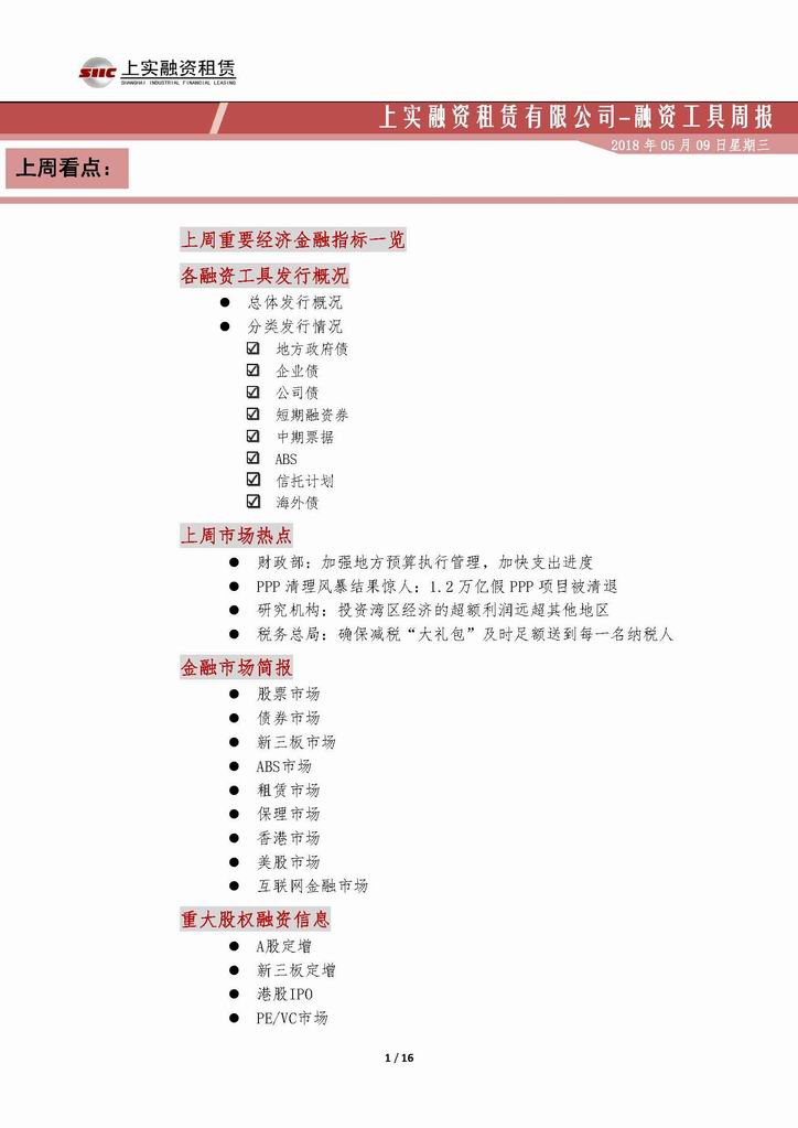 | 當(dāng)前位置:新聞中心 > 上實(shí)-融資工具周報(bào)20180427-20180504 | |||||