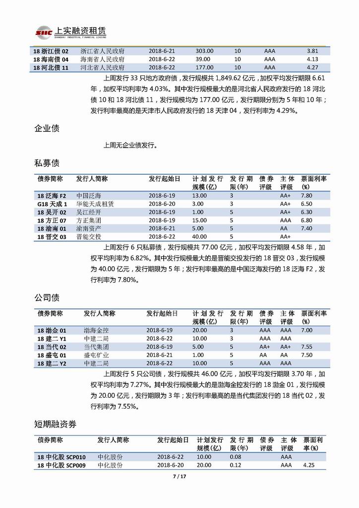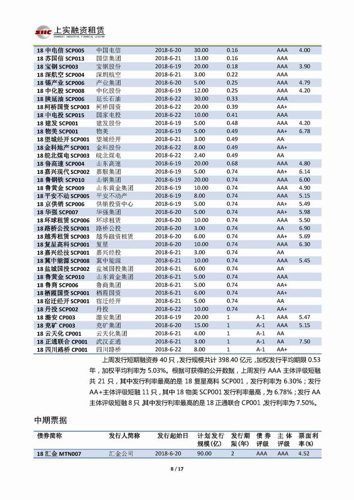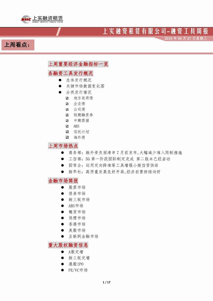 | 當(dāng)前位置:新聞中心 > 上實-融資工具周報20180615-20180622 | |||||