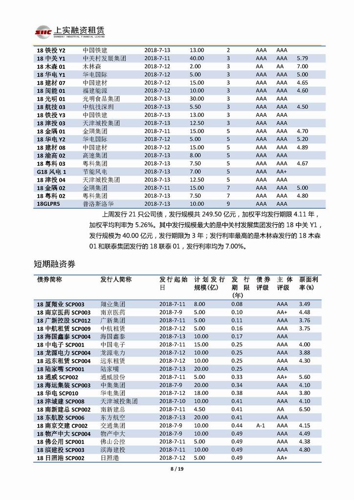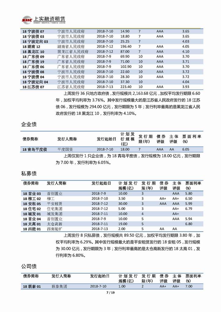 | 當(dāng)前位置:新聞中心 > 上實(shí)-融資工具周報(bào)20180706-20180713 | |||||