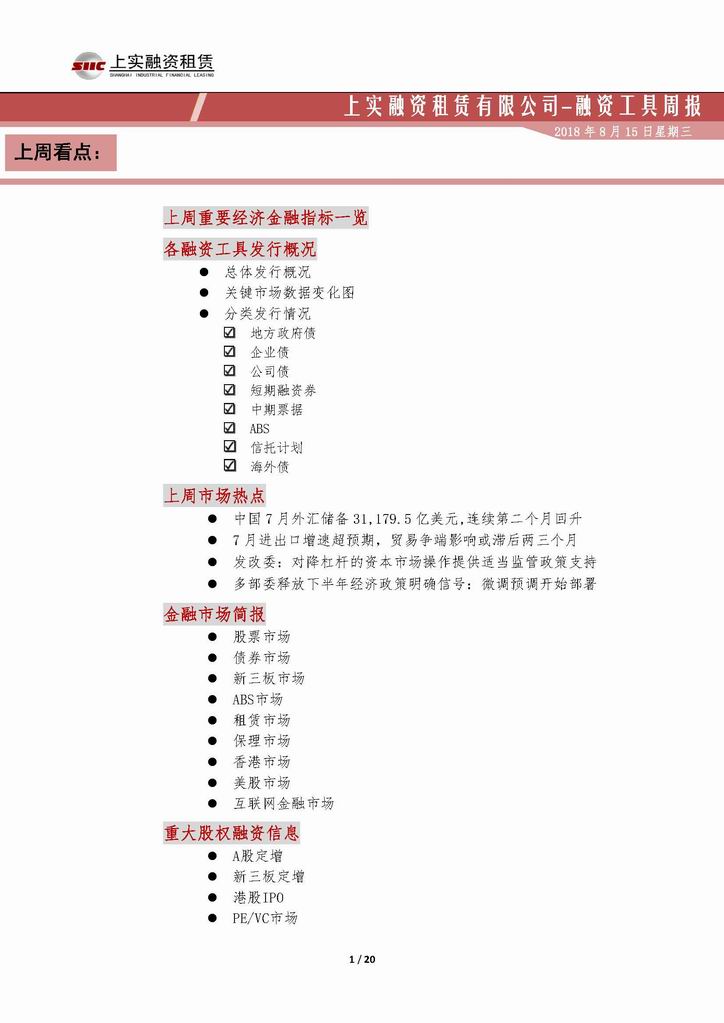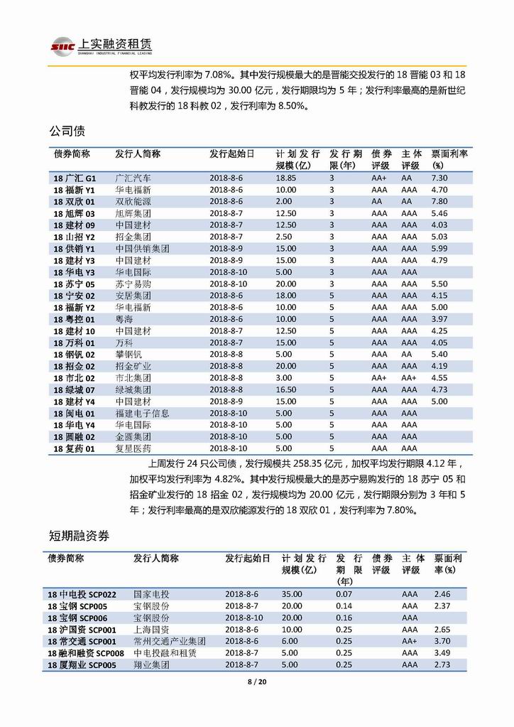 | 當(dāng)前位置:新聞中心 > 上實(shí)-融資工具周報(bào)20180803-20180810 | |||||