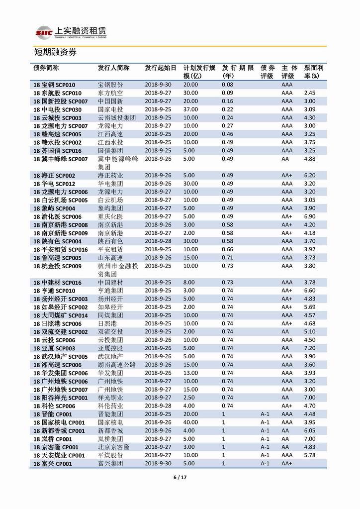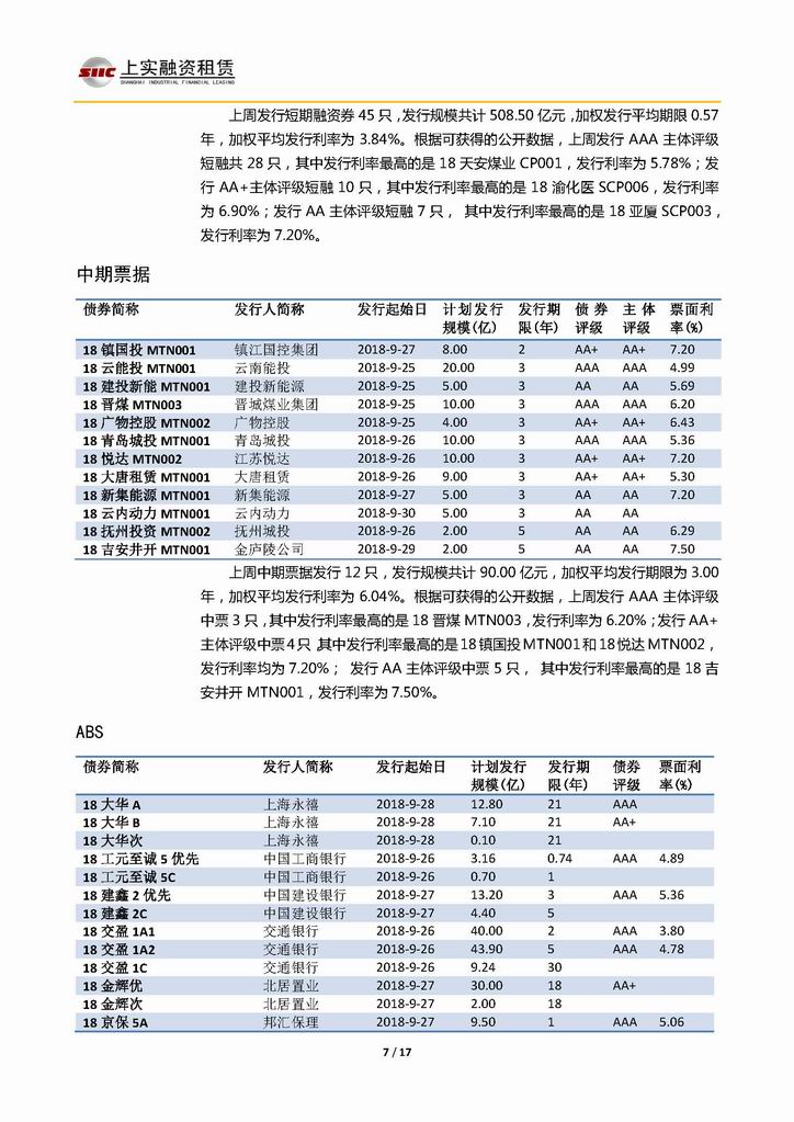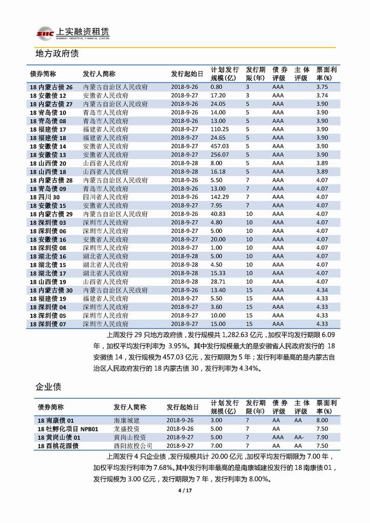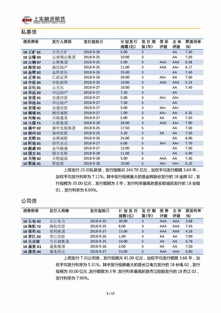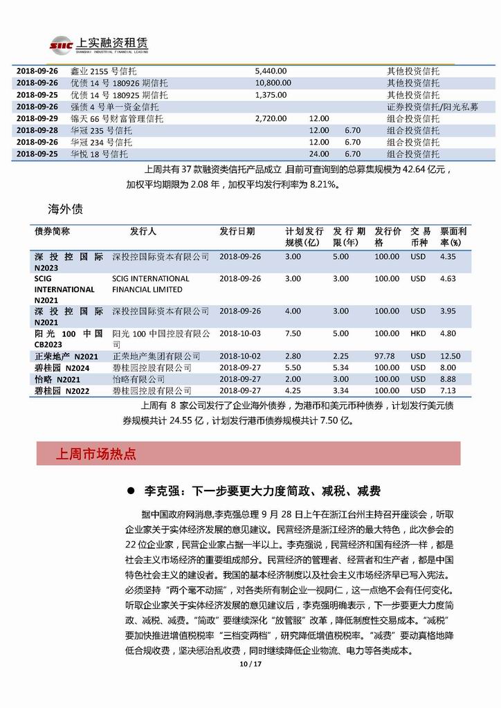 | 當(dāng)前位置:新聞中心 > 上實(shí)-融資工具周報(bào)20180921-20181005 | |||||