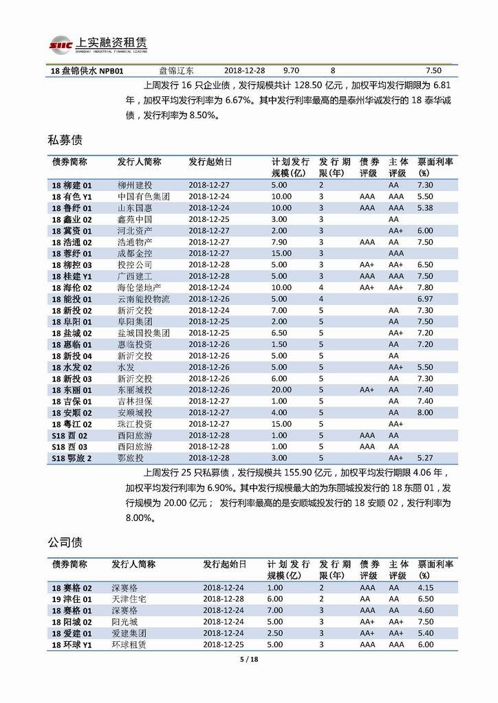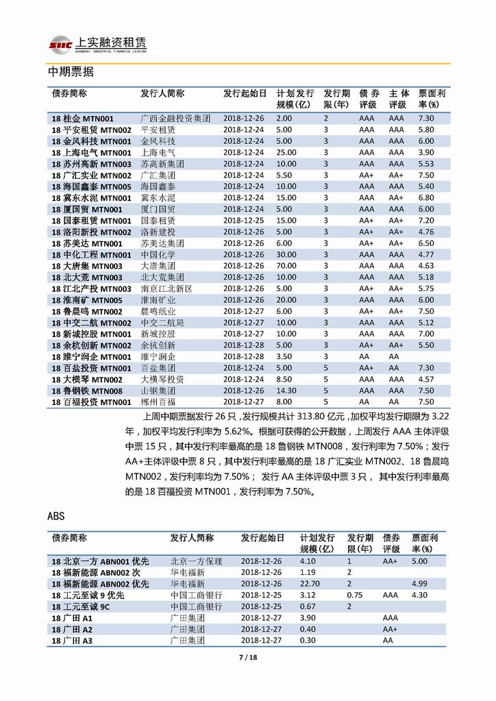 上實(shí)-融資工具周報(bào)20181221-20181228