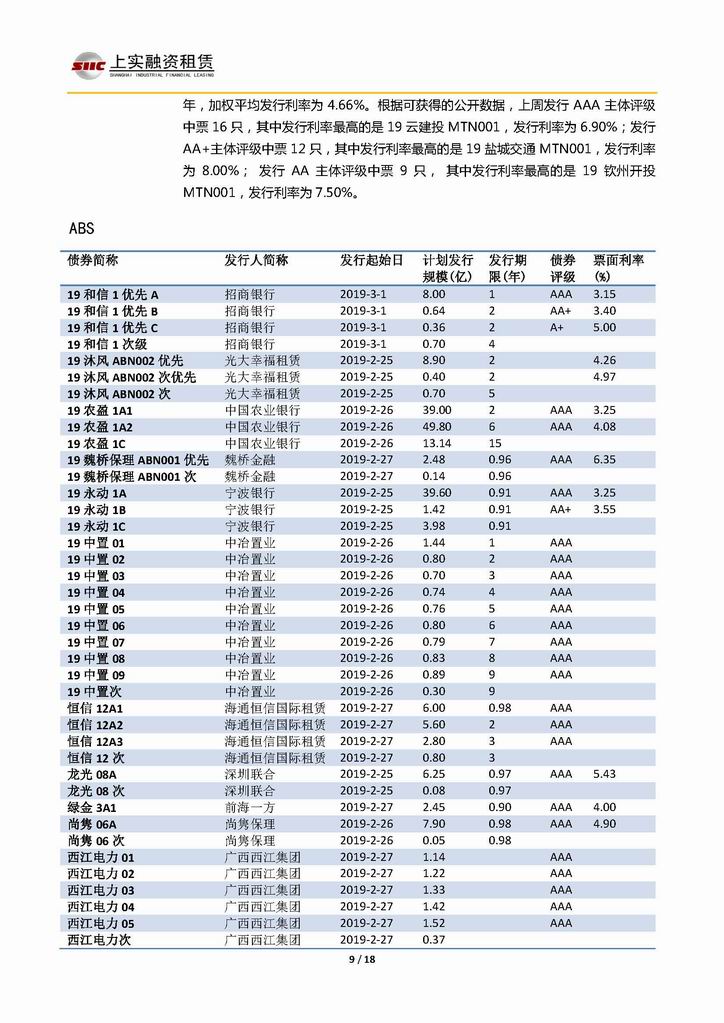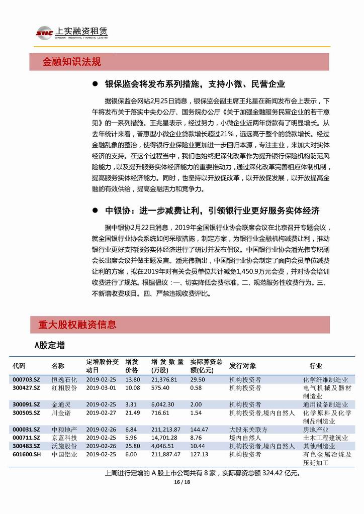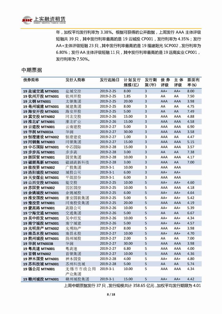 | 當(dāng)前位置:新聞中心 > 上實(shí)-融資工具周報(bào)20190222-20190301 | |||||