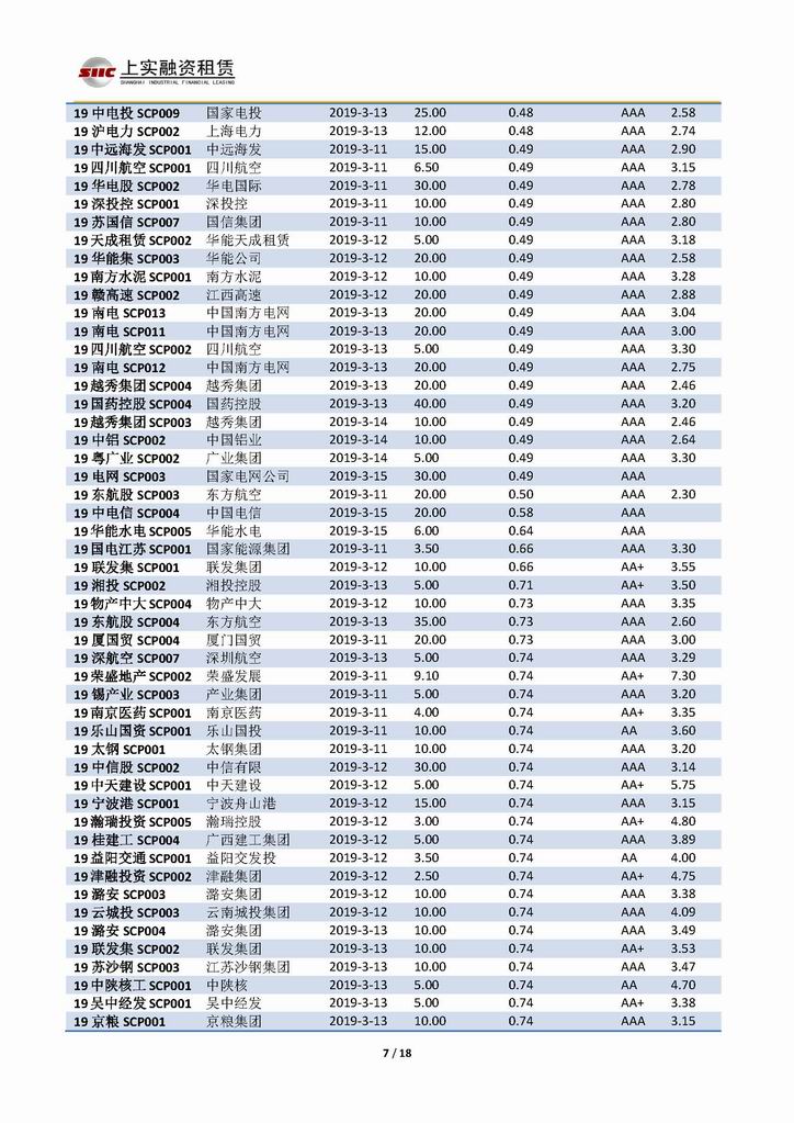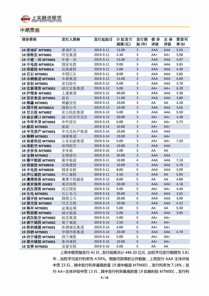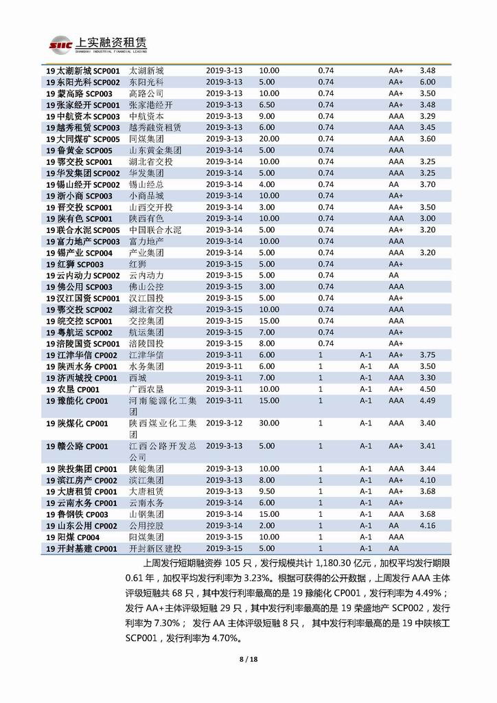| 當(dāng)前位置:新聞中心 > 上實(shí)-融資工具周報(bào)20190308-20190315 | |||||