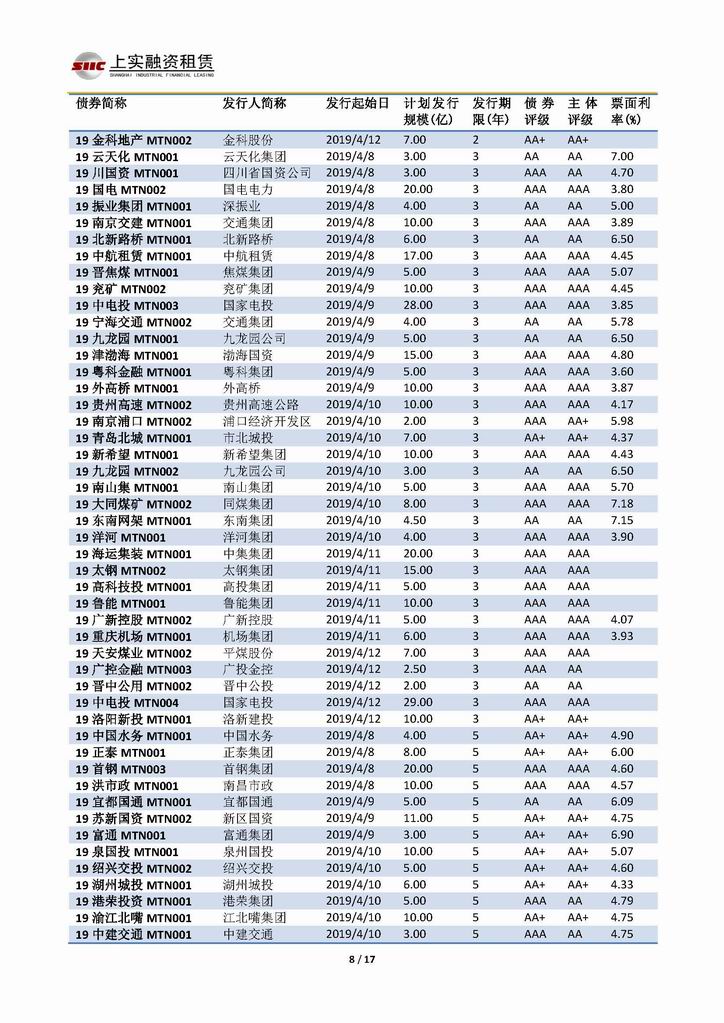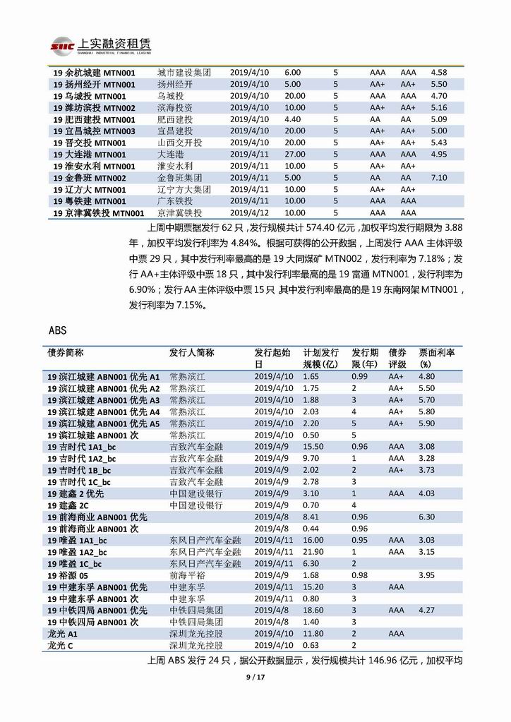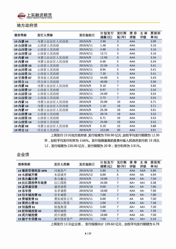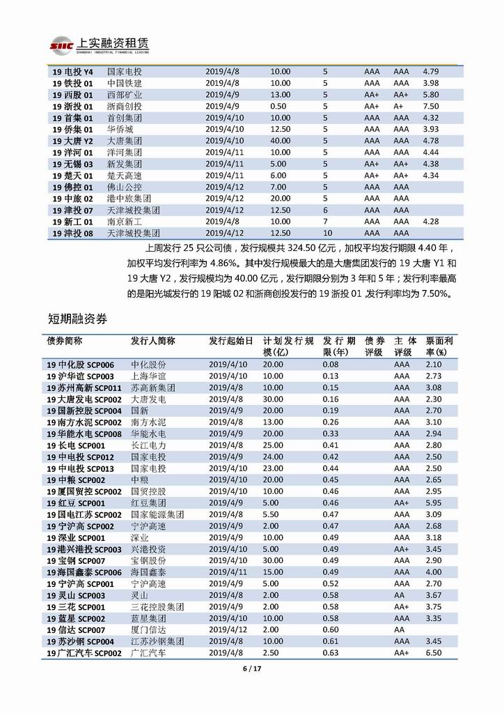 | 當(dāng)前位置:新聞中心 > 上實(shí)-融資工具周報(bào)20190405-20190412 | |||||