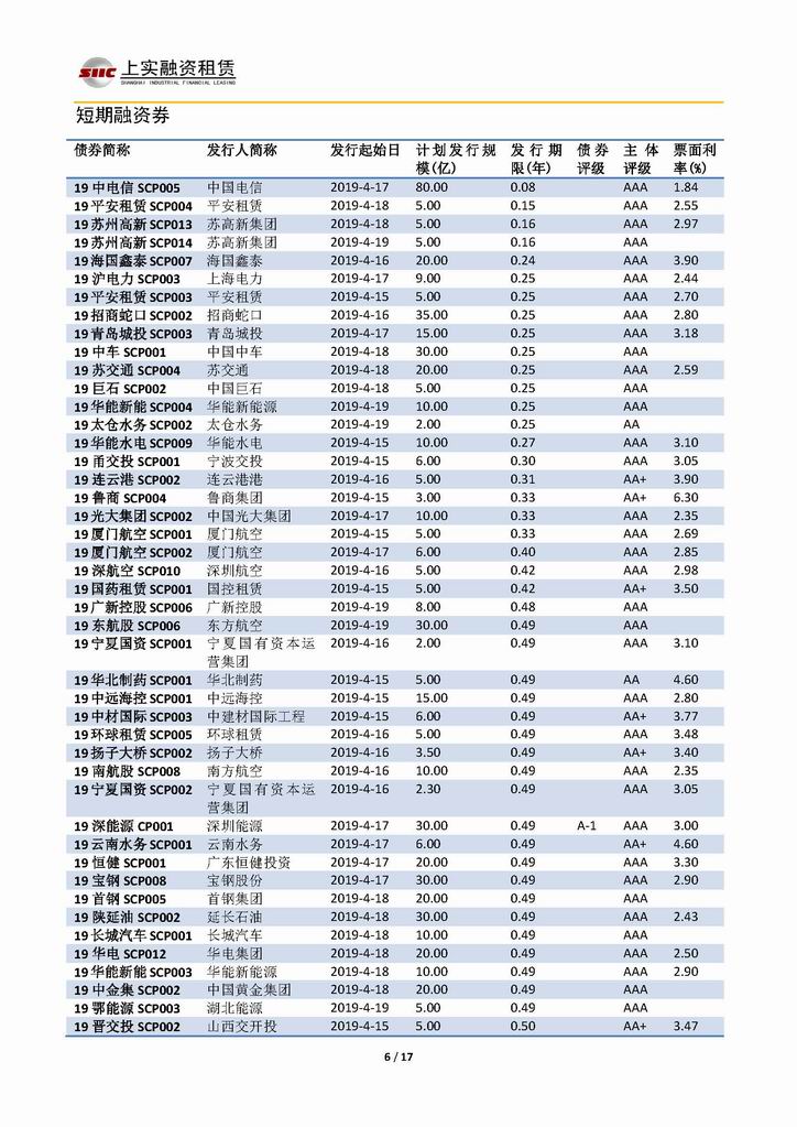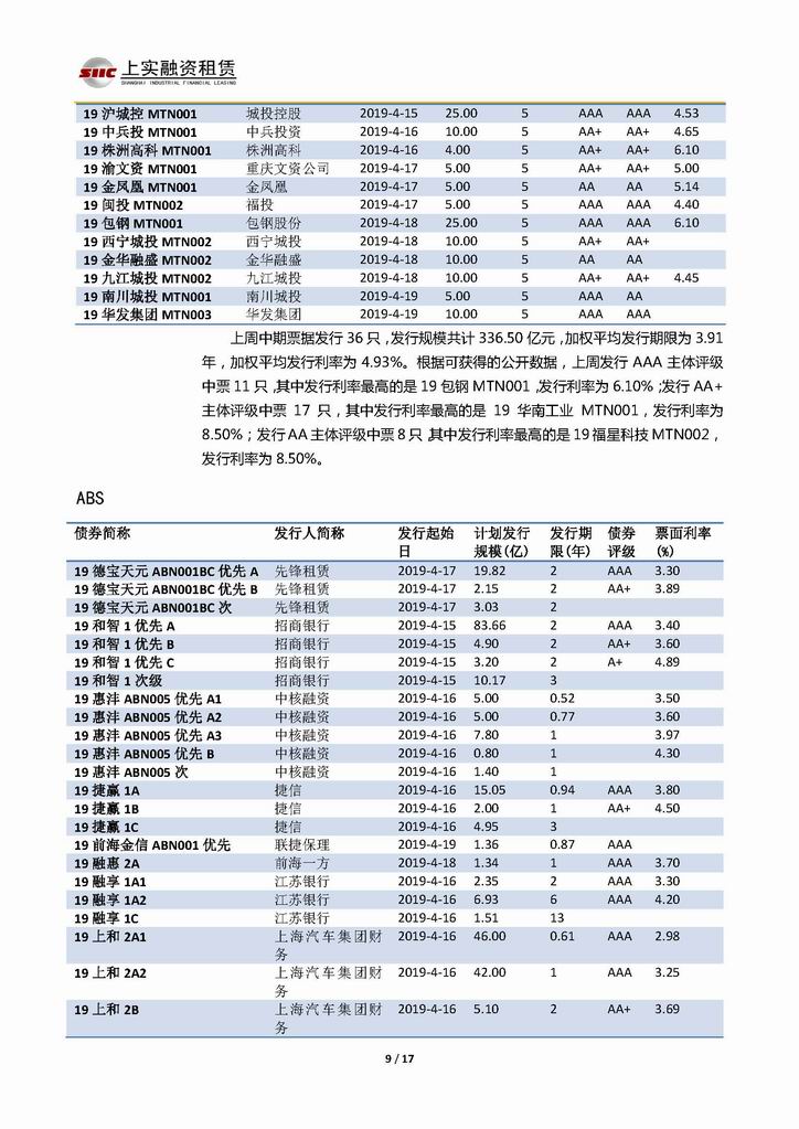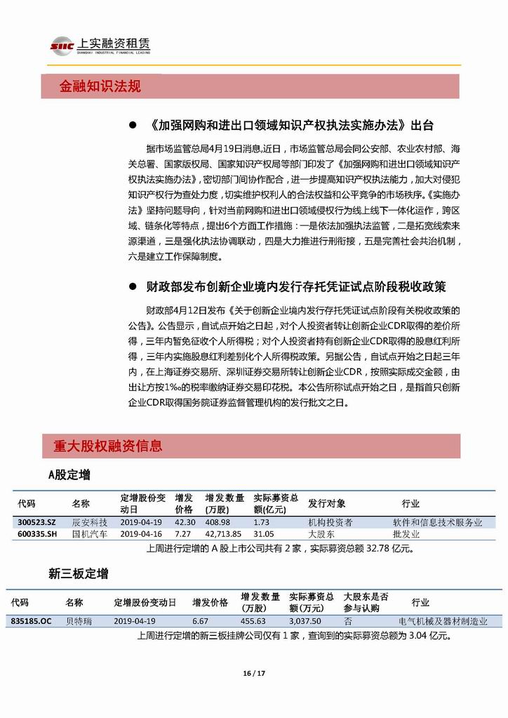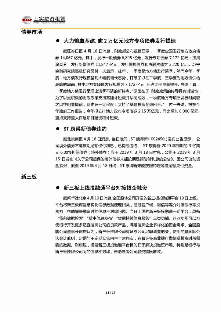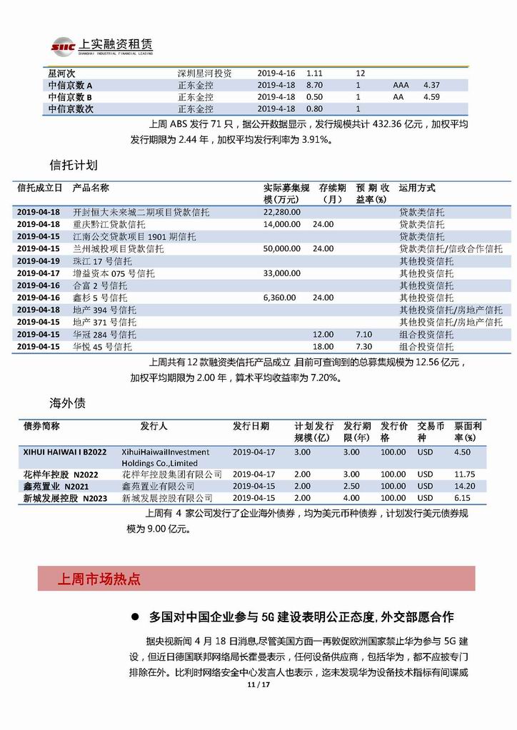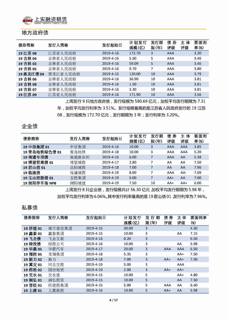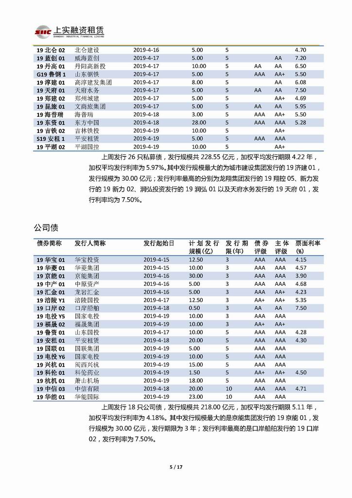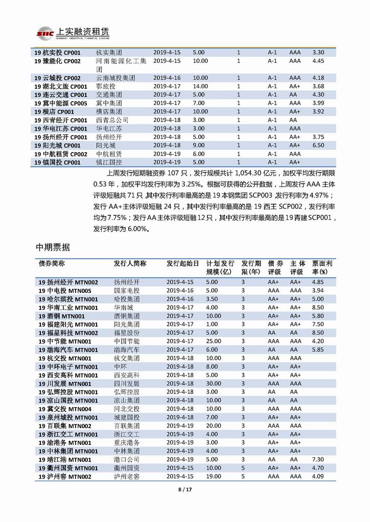 | 當(dāng)前位置:新聞中心 > 上實(shí)-融資工具周報(bào)20190412-20190419 | |||||