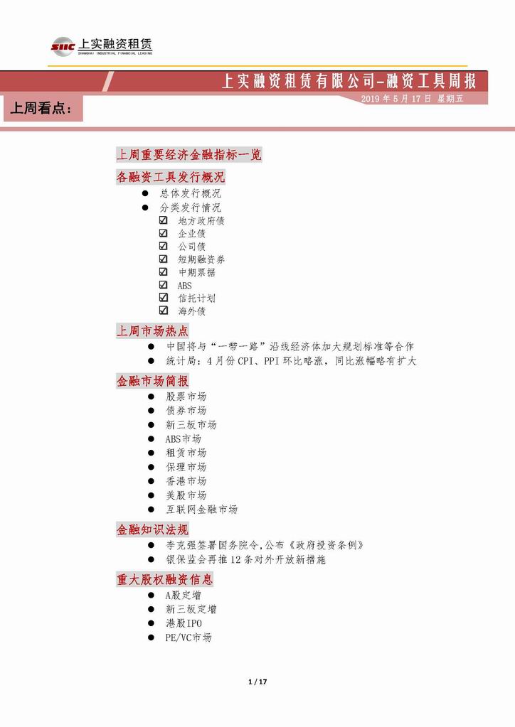 | 當(dāng)前位置:新聞中心 > 上實(shí)-融資工具周報(bào)20190503-20190510 | |||||