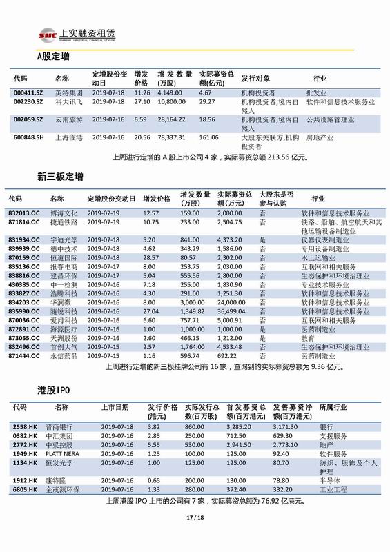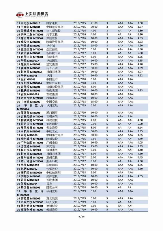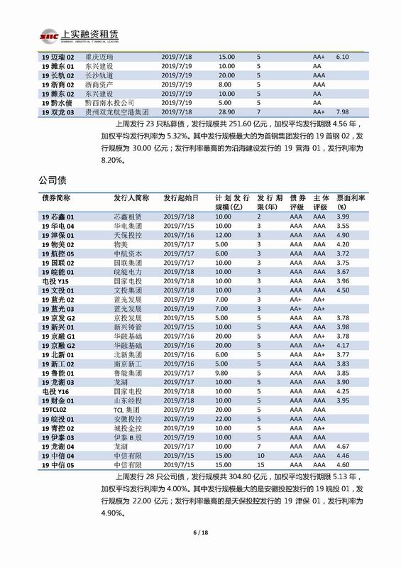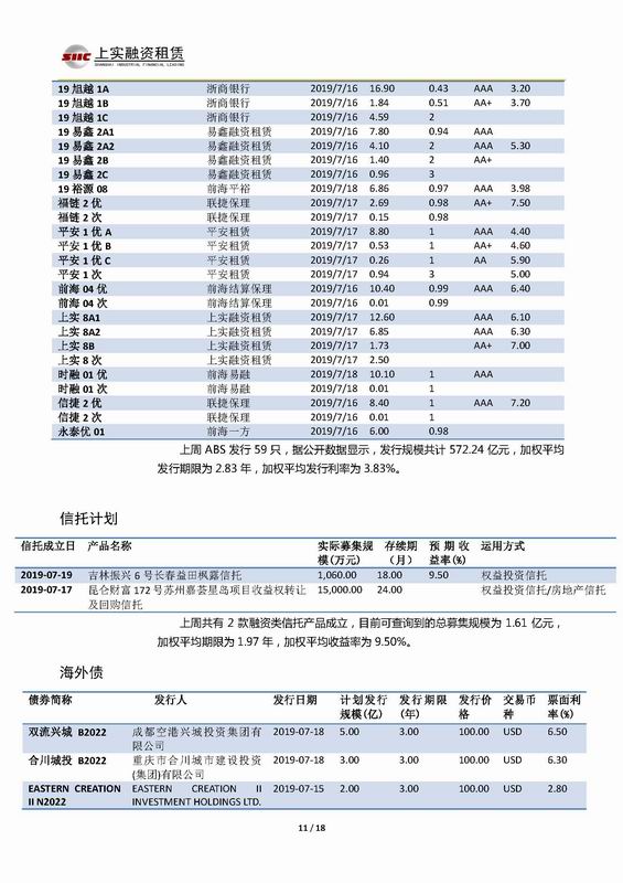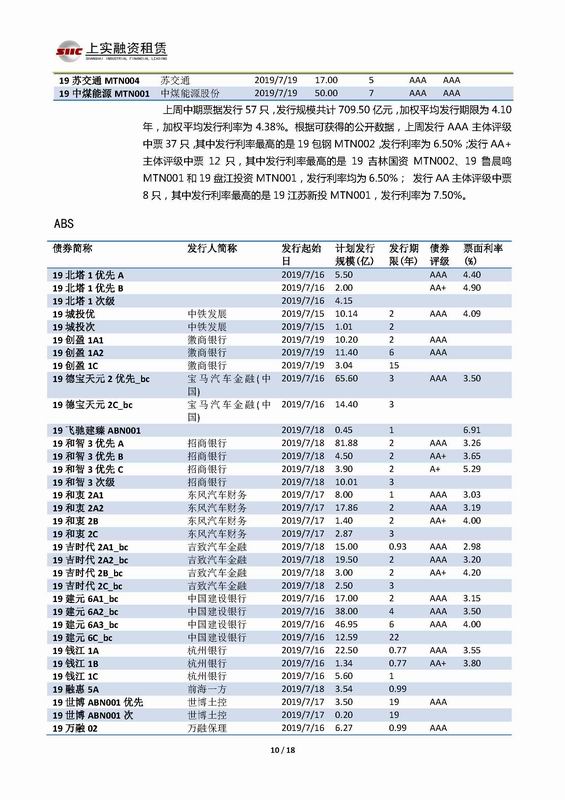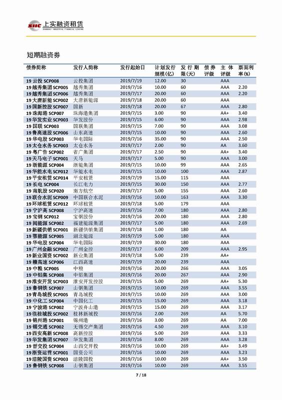 | 當(dāng)前位置:新聞中心 > 上實-融資工具周報2019.7.15-2019.7.19 | |||||