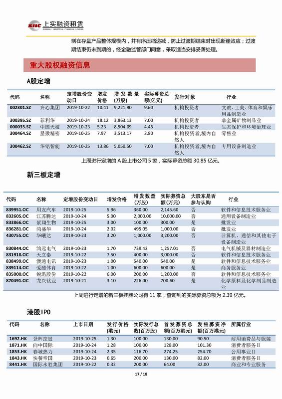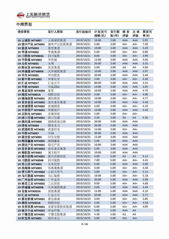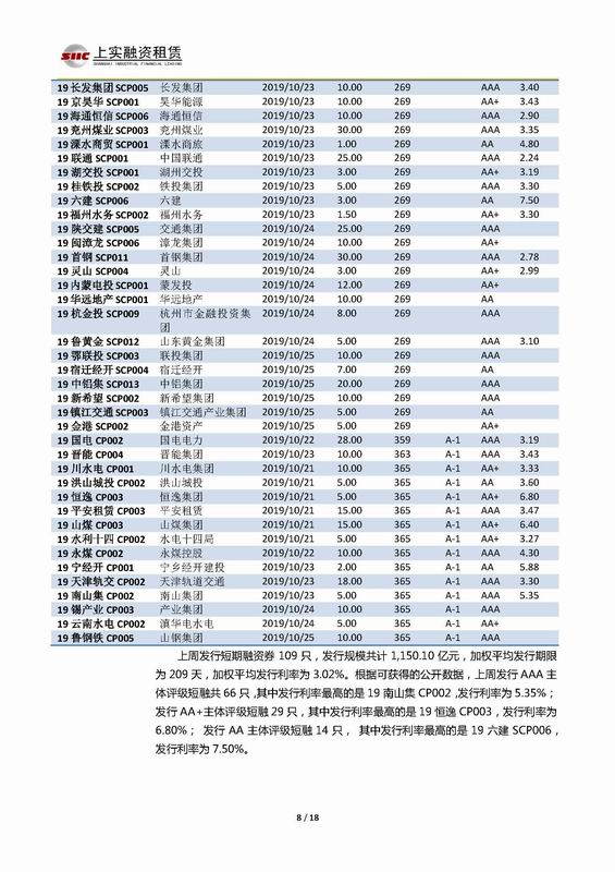 | 當(dāng)前位置:新聞中心 > 上實-融資工具周報2019.10.21-2019.10.25 | |||||