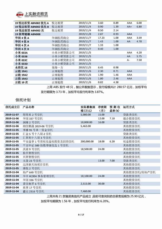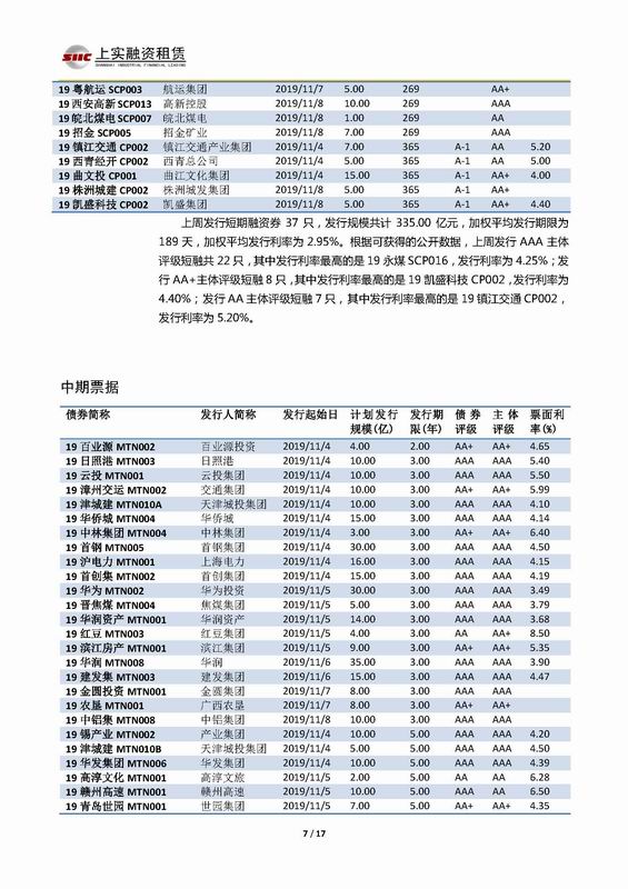 | 當前位置:新聞中心 > 上實-融資工具周報2019.11.4-2019.11.8 | |||||