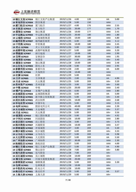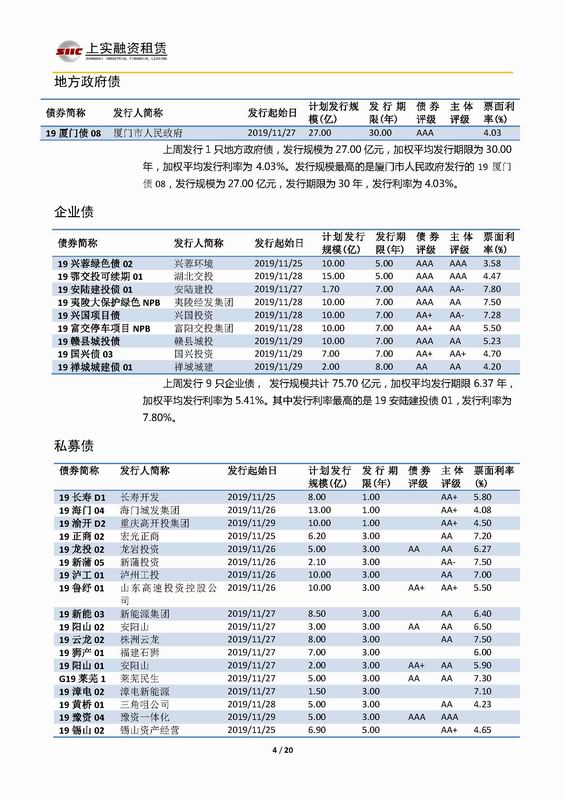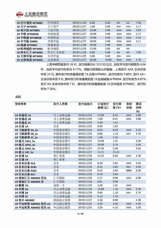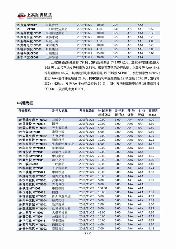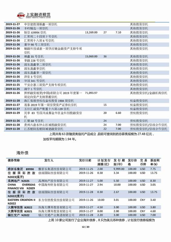 | 當(dāng)前位置:新聞中心 > 上實(shí)-融資工具周報(bào)2019.11.25-2019.11.29 | |||||
