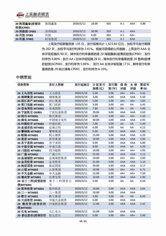 | 當(dāng)前位置:新聞中心 > 上實(shí)-融資工具周報(bào)2020.3.9-2020.3.13 | |||||