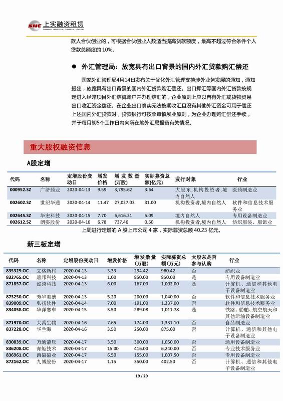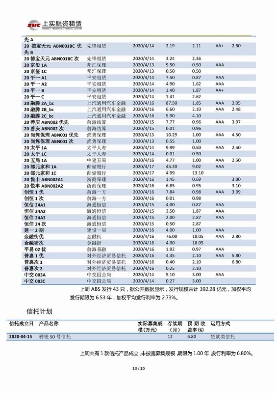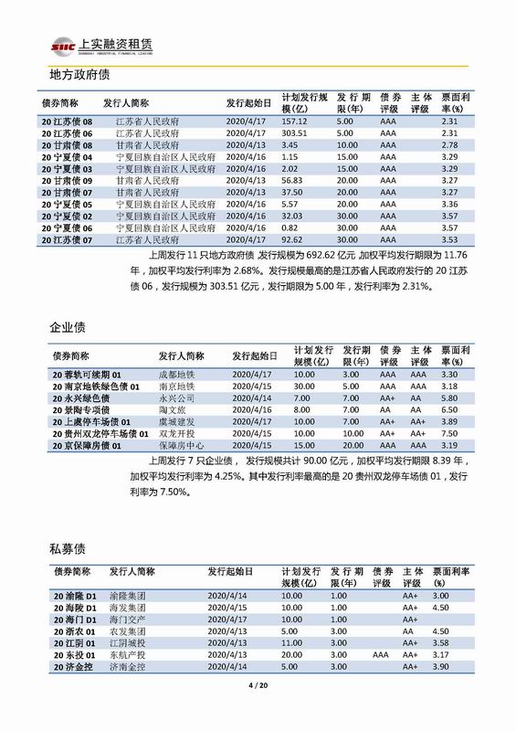 | 當(dāng)前位置:新聞中心 > 上實-融資工具周報2020.4.13-2020.4.17 | |||||
