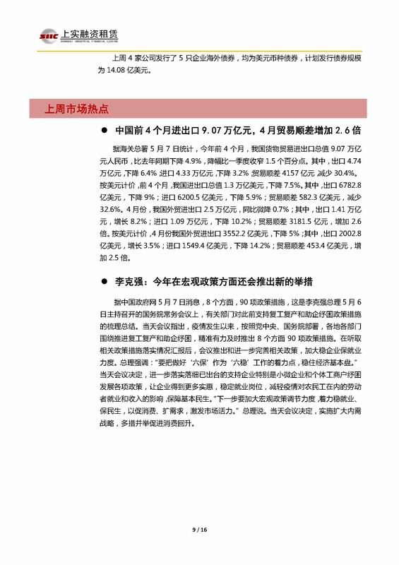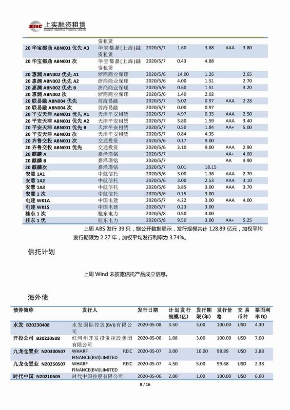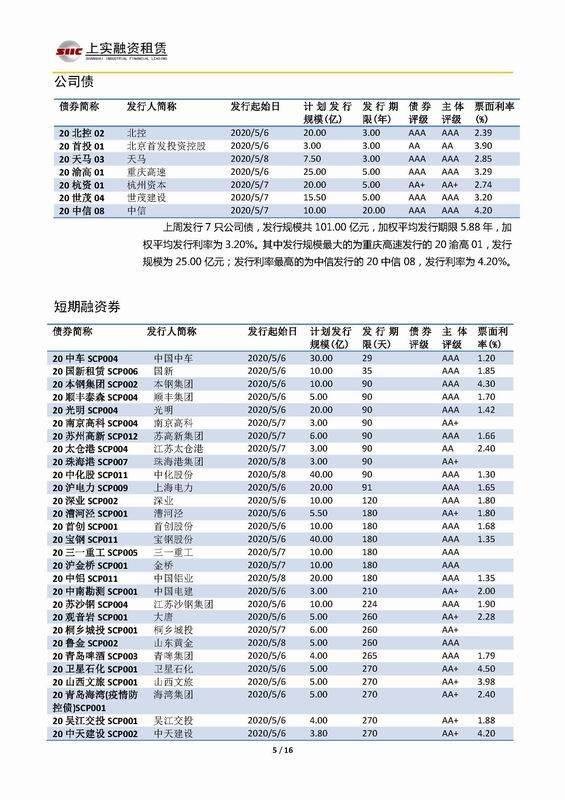 | 當前位置:新聞中心 > 上實-融資工具周報2020.5.4-2020.5.8 | |||||