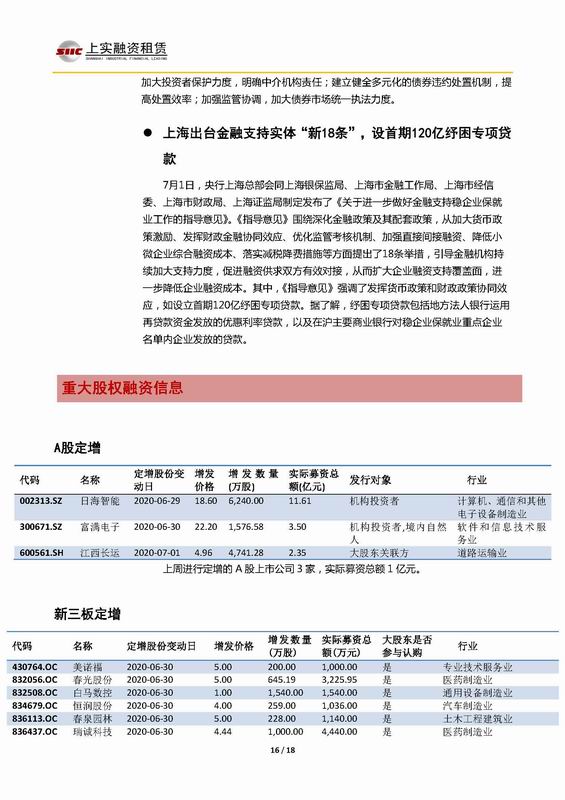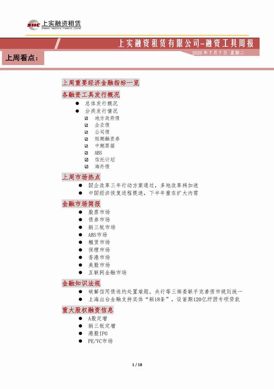 | 當(dāng)前位置:新聞中心 > 上實-融資工具周報-2020.6.29-2020.7.3 | |||||