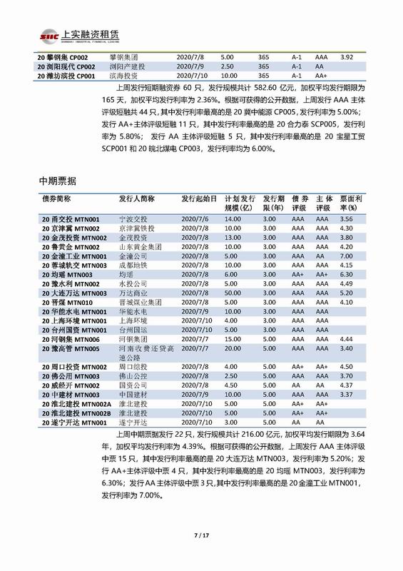 | 當(dāng)前位置:新聞中心 > 上實(shí)-融資工具周報(bào)2020.7.13-2020.7.17 | |||||