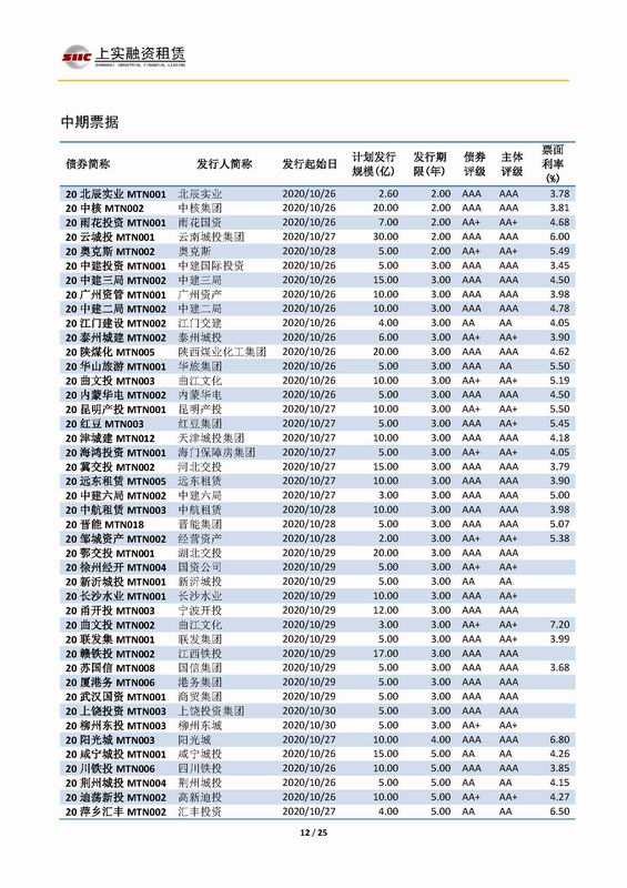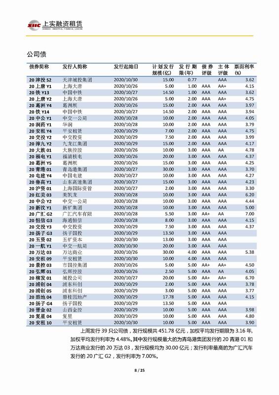 | 當(dāng)前位置:新聞中心 > 上實-融資工具周報2020.10.26-2020.10.30 | |||||