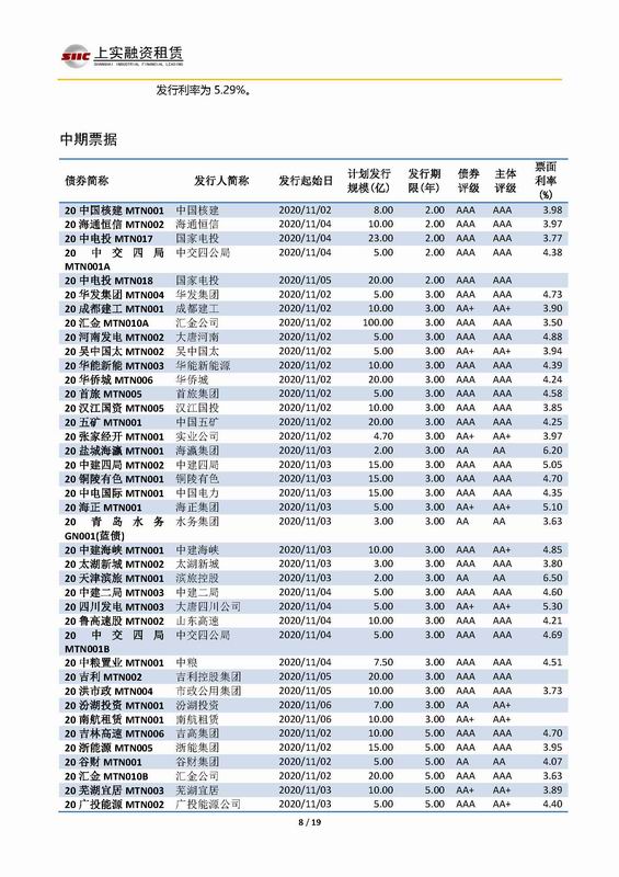 | 當前位置:新聞中心 > 上實-融資工具周報2020.11.2-2020.11.6 | |||||