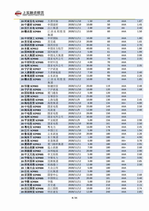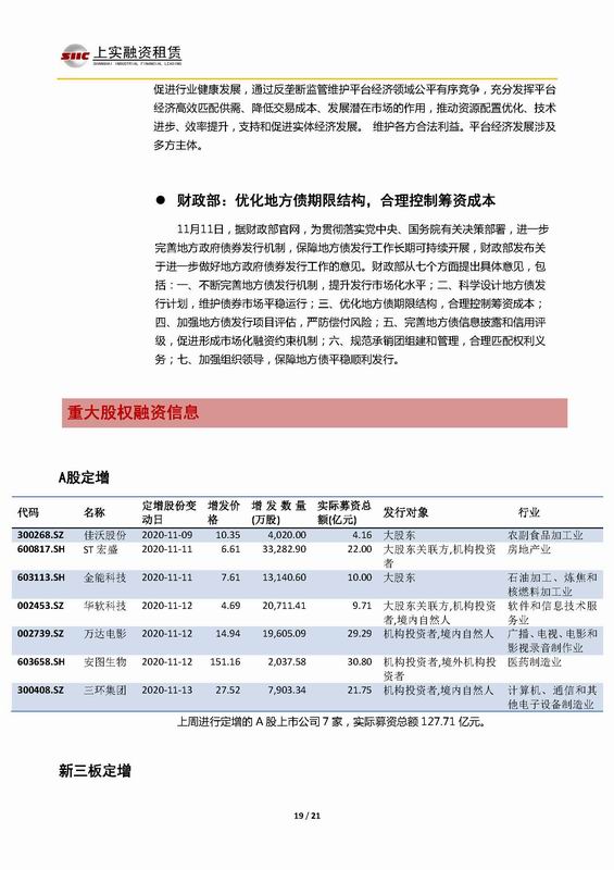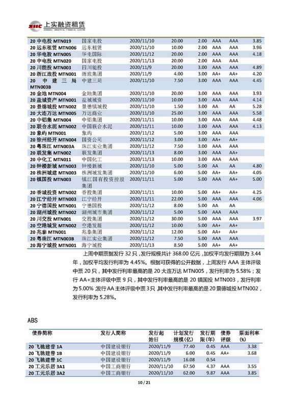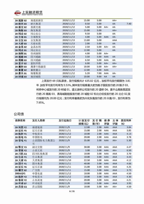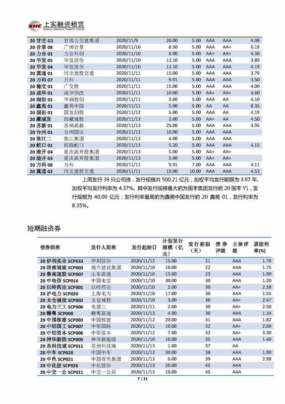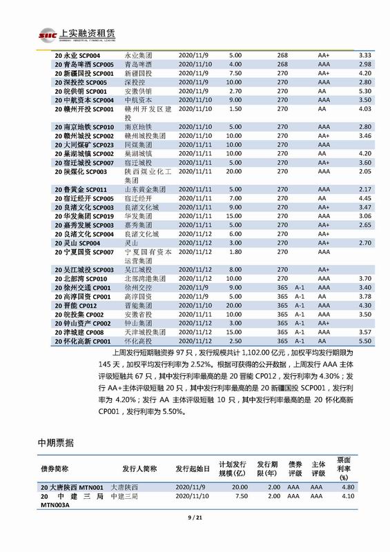 | 當(dāng)前位置:新聞中心 > 上實(shí)-融資工具周報(bào)2020.11.9-2020.11.13 | |||||