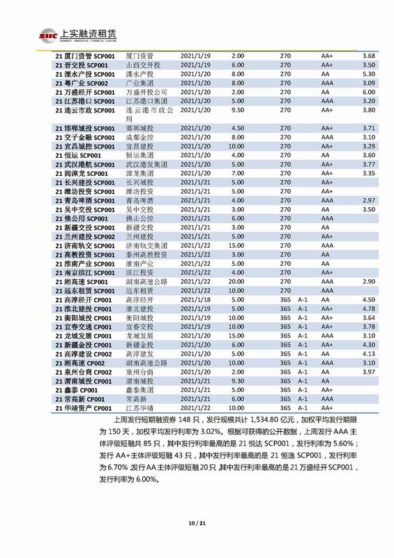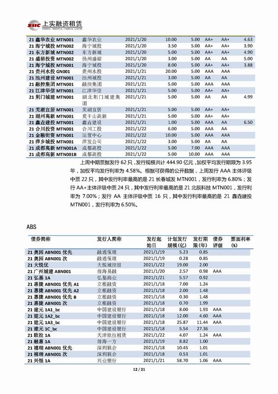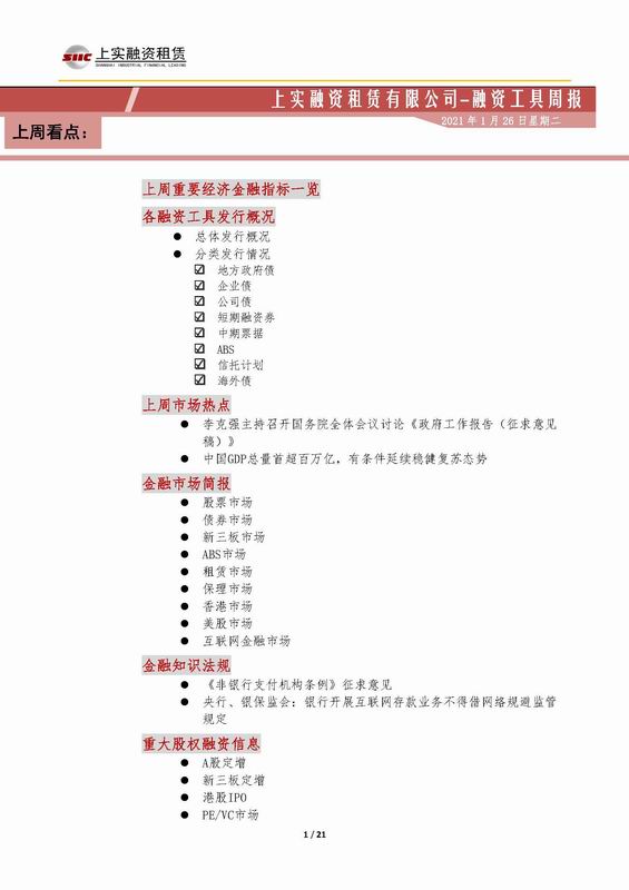 | 當(dāng)前位置:新聞中心 > 上實(shí)-融資工具周報(bào)2021.1.18-2021.1.22 | |||||
