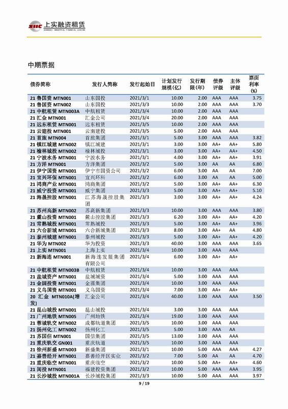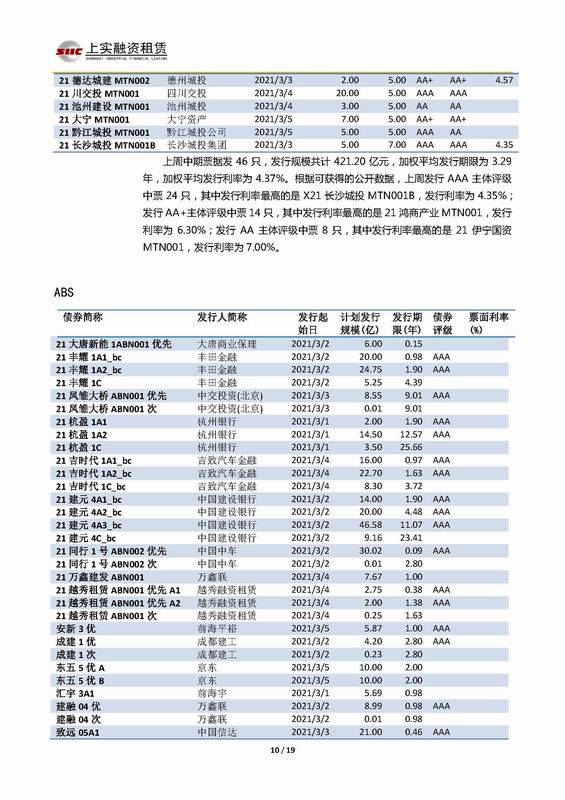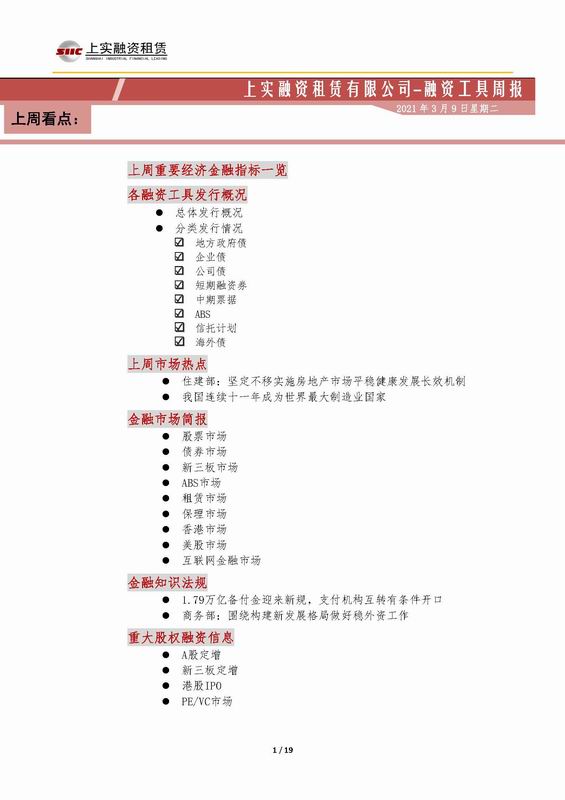 | 當(dāng)前位置:新聞中心 > 上實(shí)-融資工具周報(bào)2021.3.1-2021.3.5 | |||||