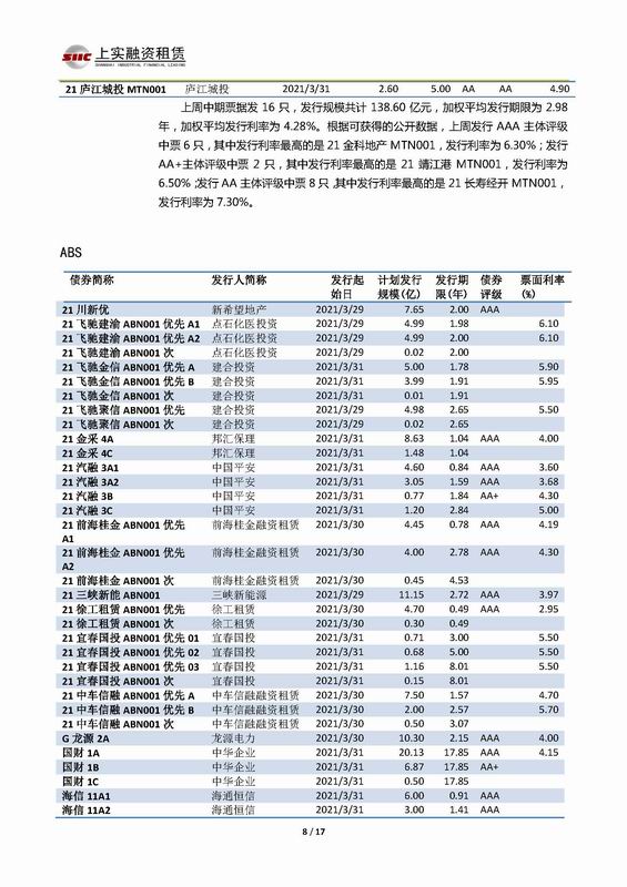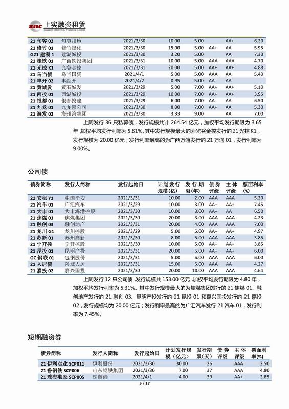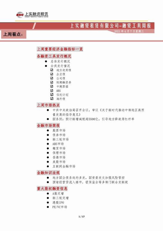 | 當(dāng)前位置:新聞中心 > 上實(shí)-融資工具周報(bào)2021.3.29-2021.4.2 | |||||