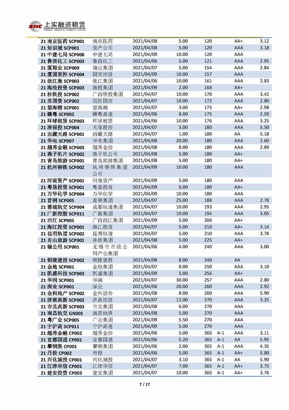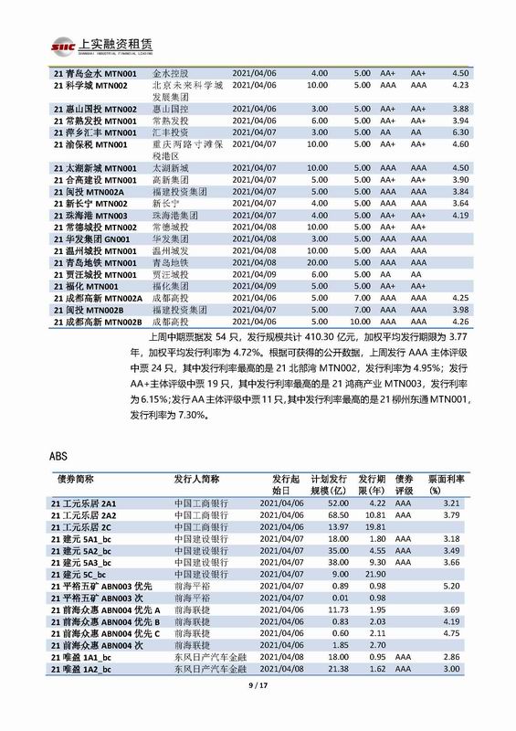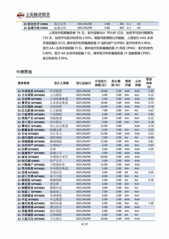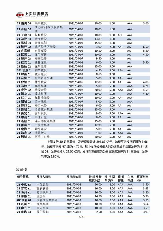| 當(dāng)前位置:新聞中心 > 上實-融資工具周報2021.4.5-2021.4.9 | |||||