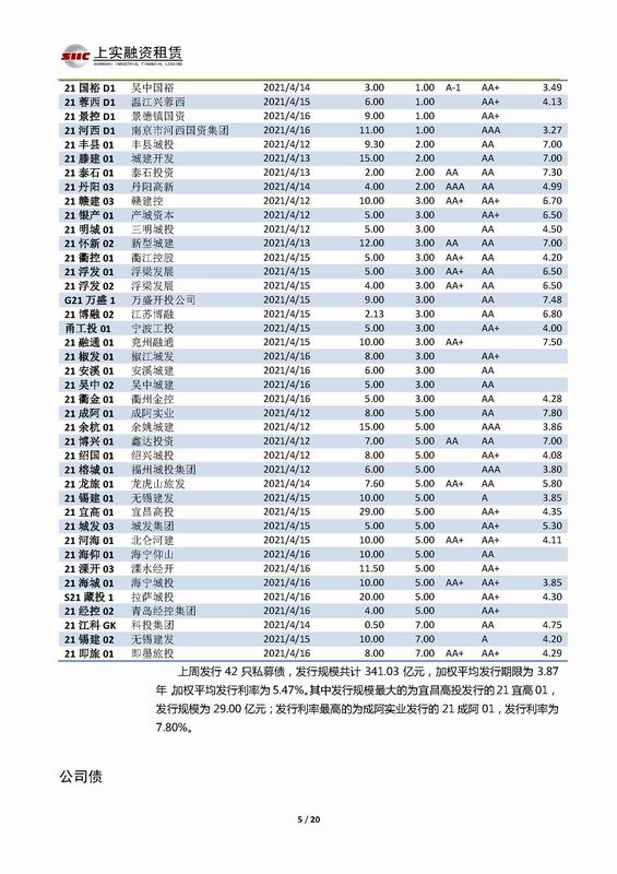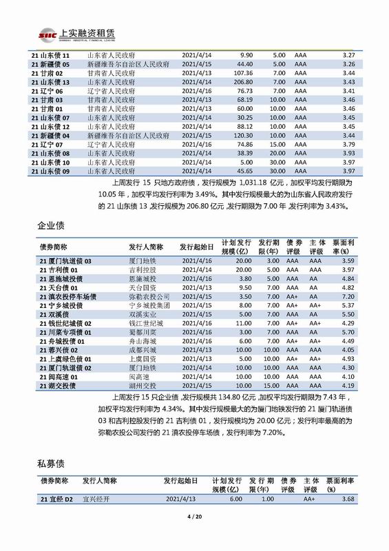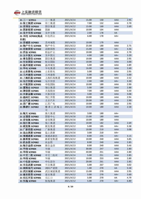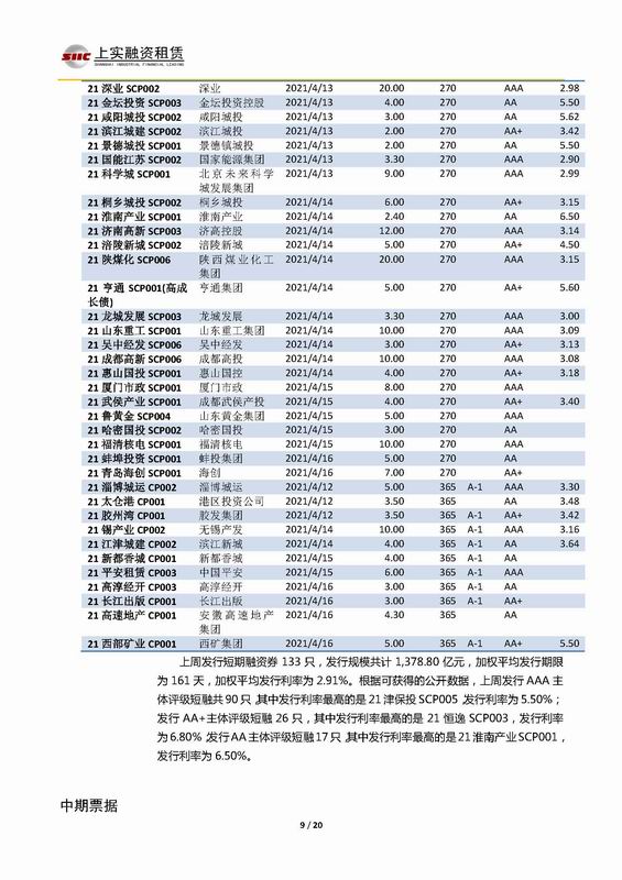 | 當(dāng)前位置:新聞中心 > 上實-融資工具周報2021.4.12-2021.4.16 | |||||