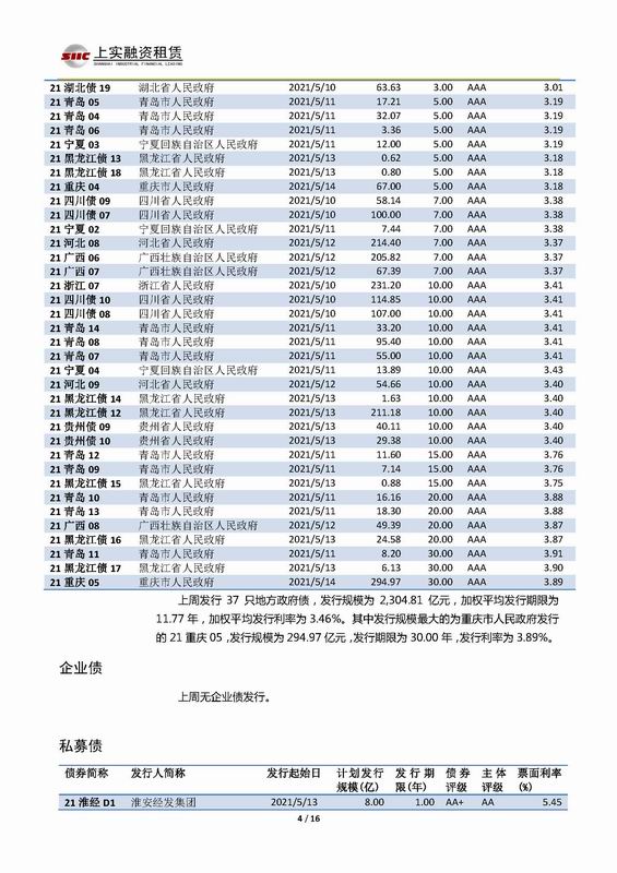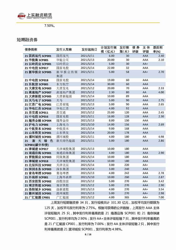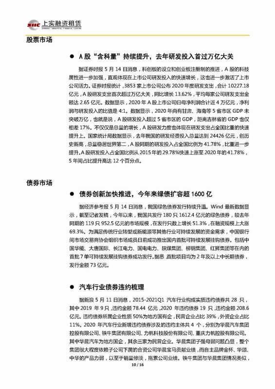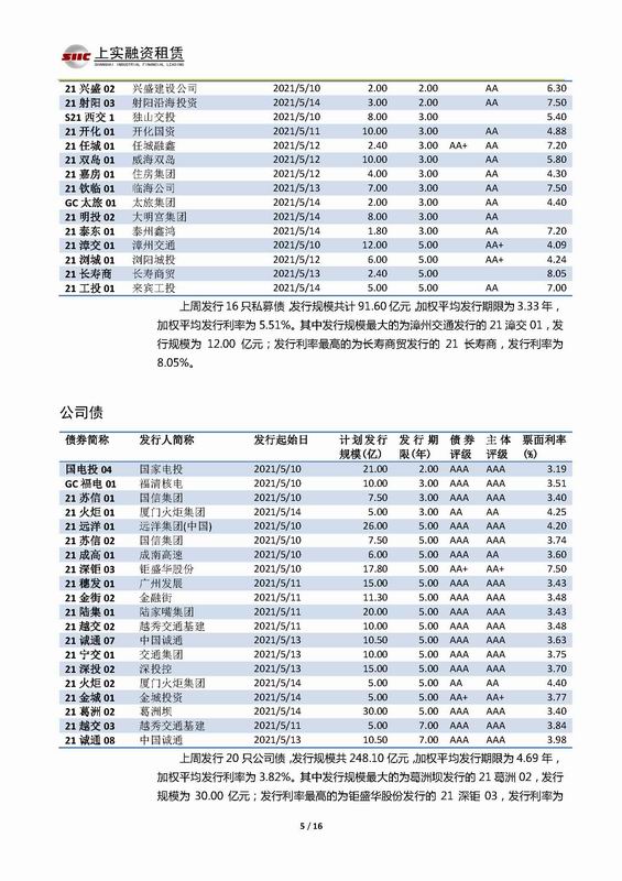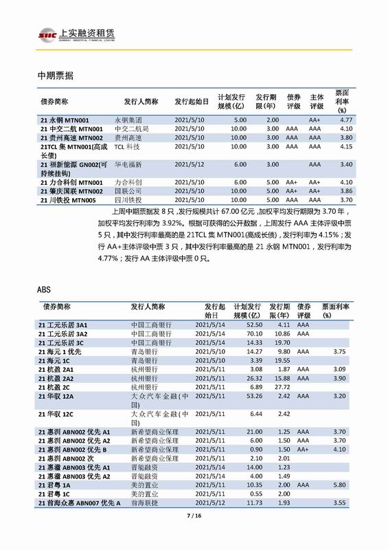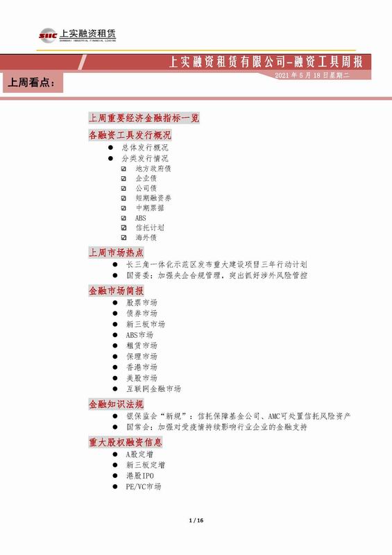| 當(dāng)前位置:新聞中心 > 上實(shí)-融資工具周報(bào)2021.5.10-2021.5.14 | |||||
