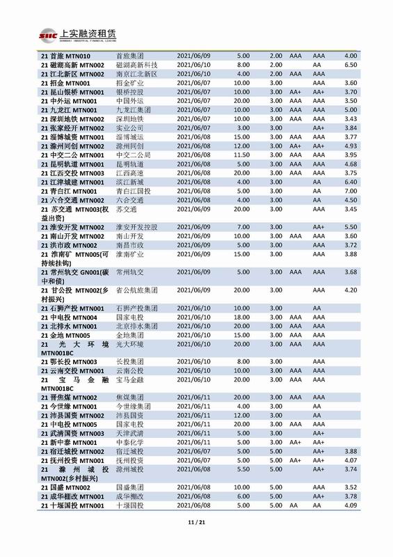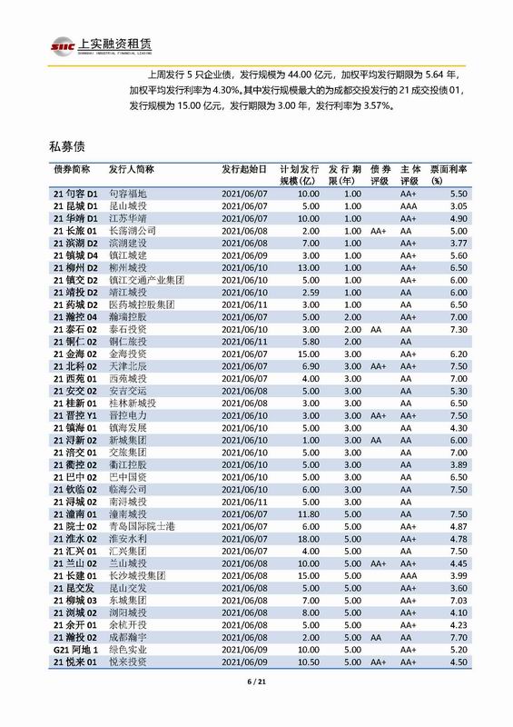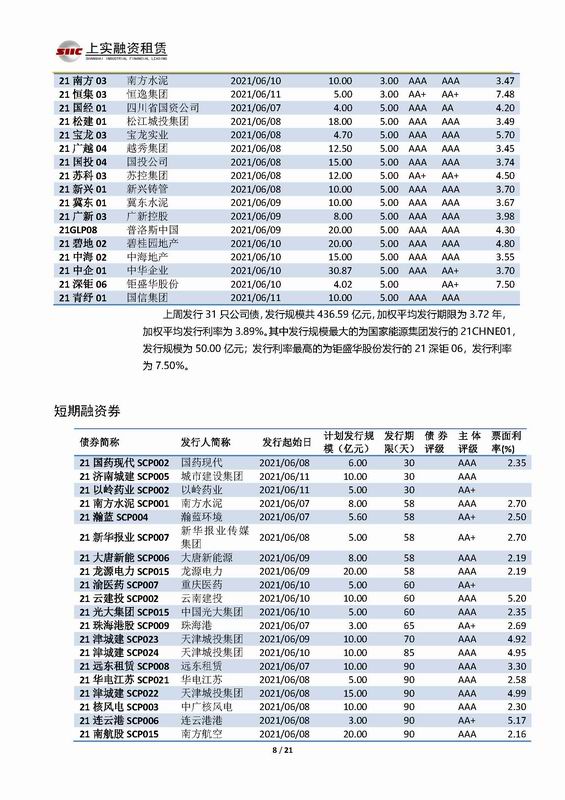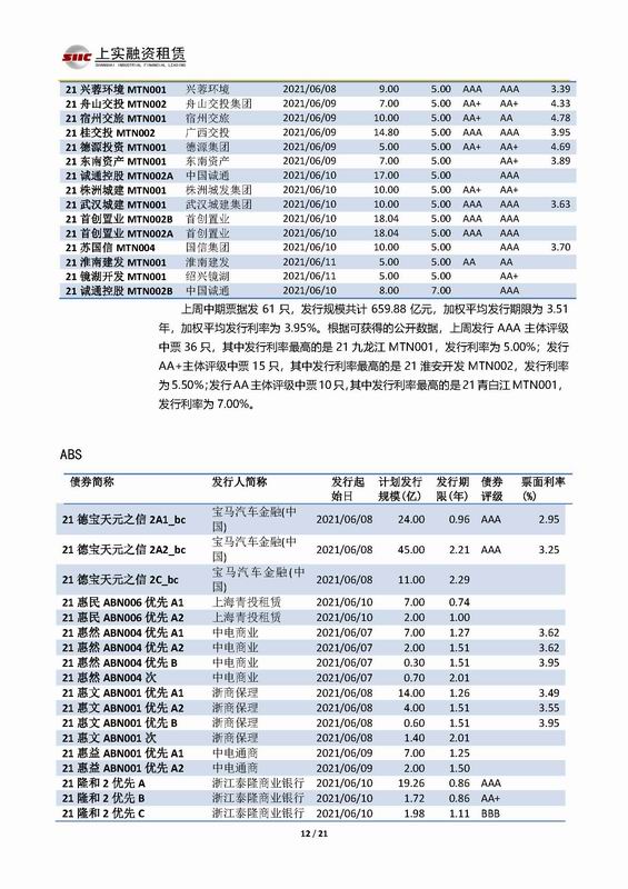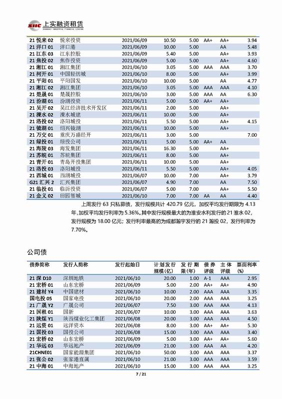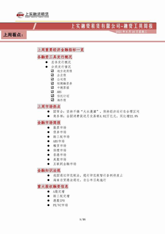 | 當(dāng)前位置:新聞中心 > 上實(shí)-融資工具周報(bào)2021.6.7-2021.6.11 | |||||