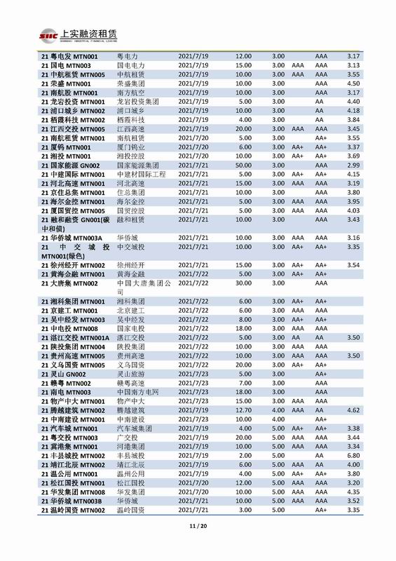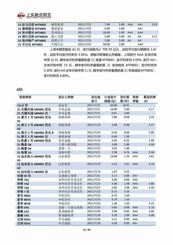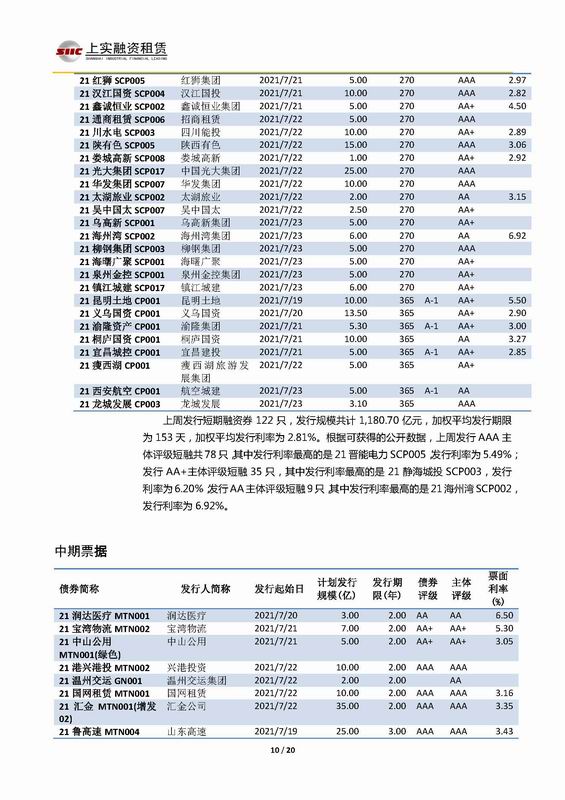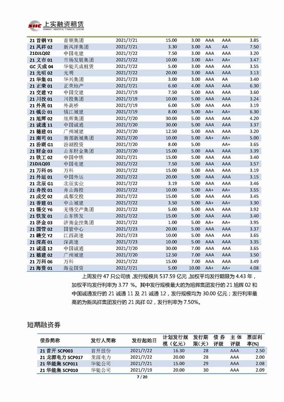 | 當(dāng)前位置:新聞中心 > 上實(shí)-融資工具周報2021.7.19-2021.7.23 | |||||