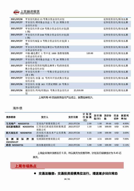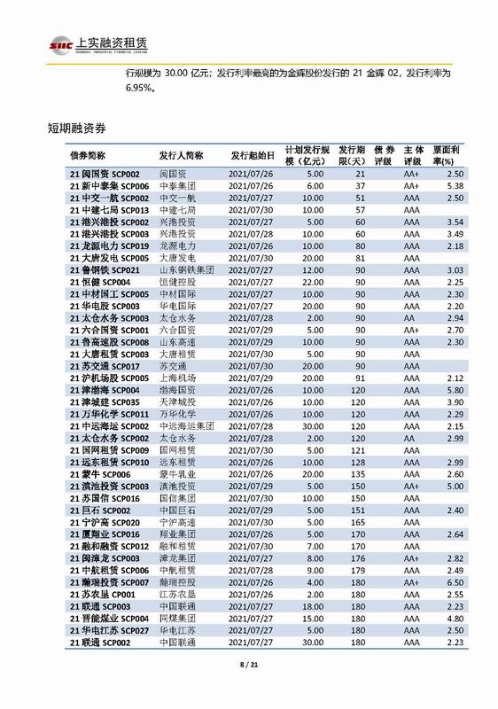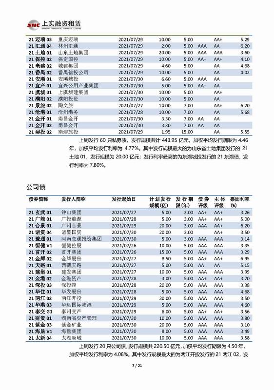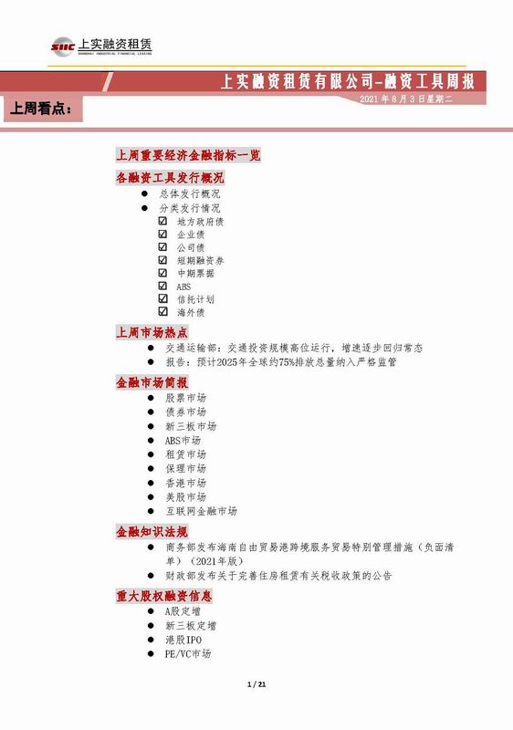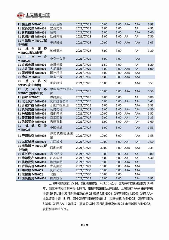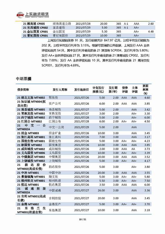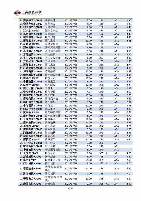 | 當(dāng)前位置:新聞中心 > 上實(shí)-融資工具周報(bào)2021.7.26-2021.7.30 | |||||