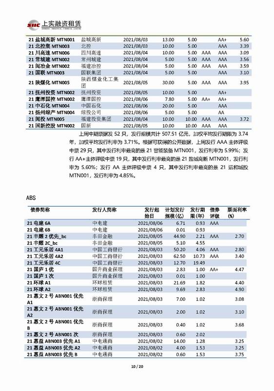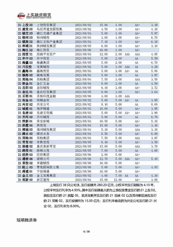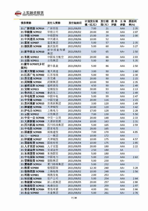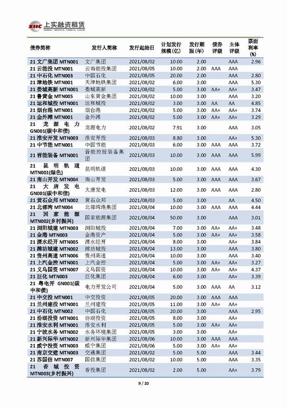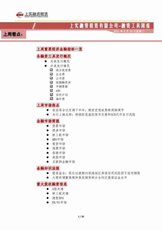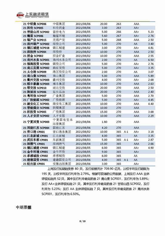 | 當(dāng)前位置:新聞中心 > 上實(shí)-融資工具周報(bào)2021.8.2-2021.8.6 | |||||