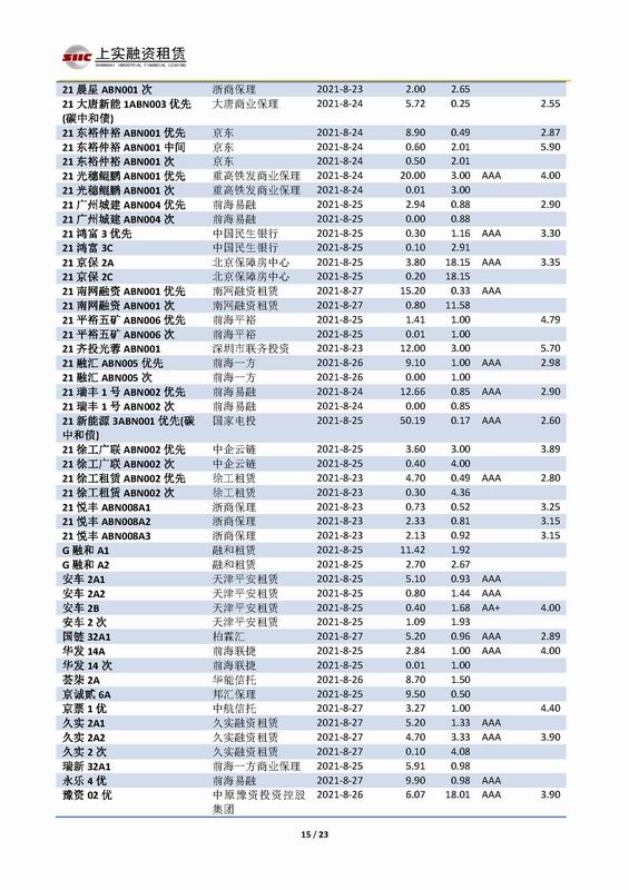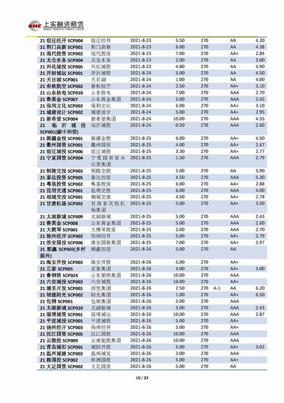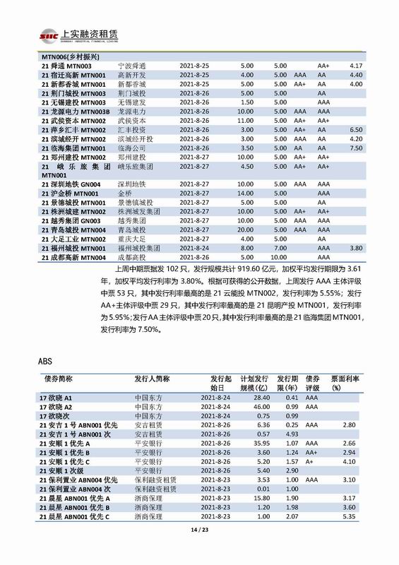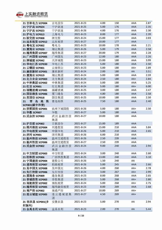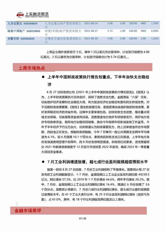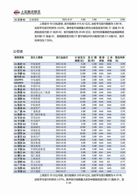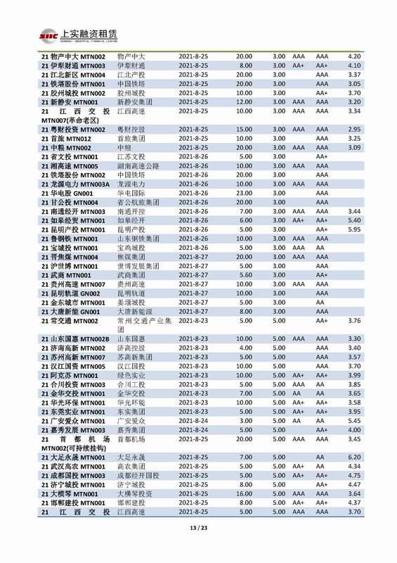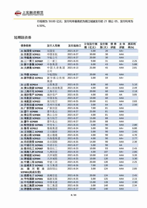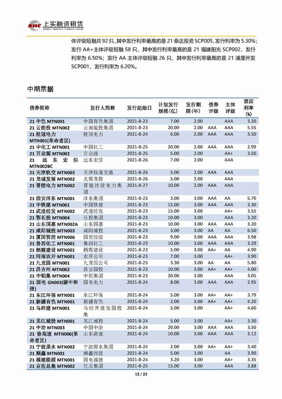 | 當(dāng)前位置:新聞中心 > 上實(shí)-融資工具周報(bào)2021.8.23-2021.8.27 | |||||
