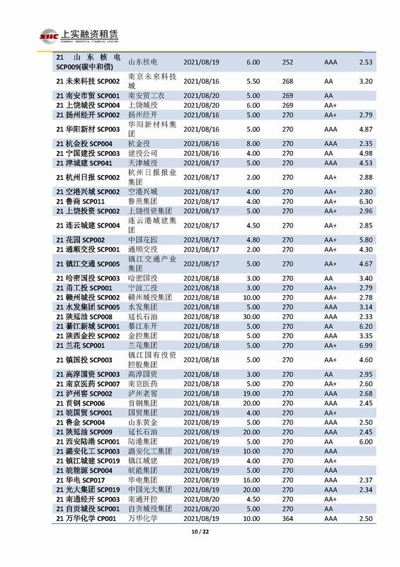 | 當(dāng)前位置:新聞中心 > 上實-融資工具周報2021.8.16-2021.8.20 | |||||
