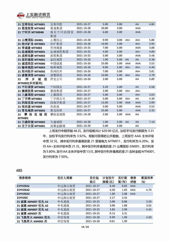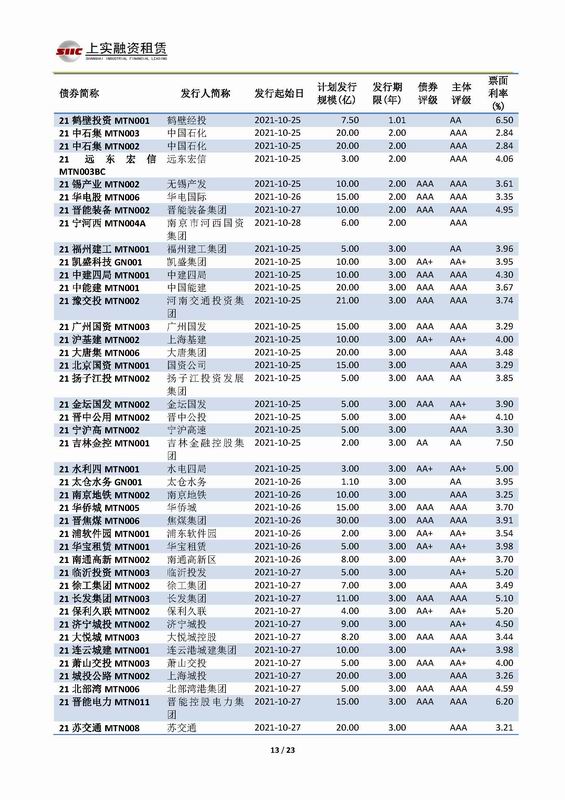 | 當(dāng)前位置:新聞中心 > 上實(shí)-融資工具周報(bào)2021.10.25-2021.10.29 | |||||