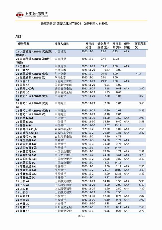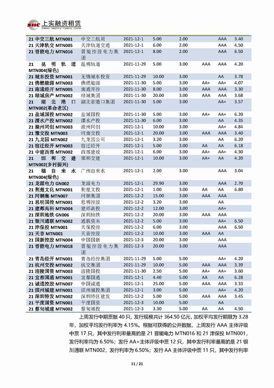 | 當(dāng)前位置:新聞中心 > 上實-融資工具周報2021.11.29-2021.12.3 | |||||