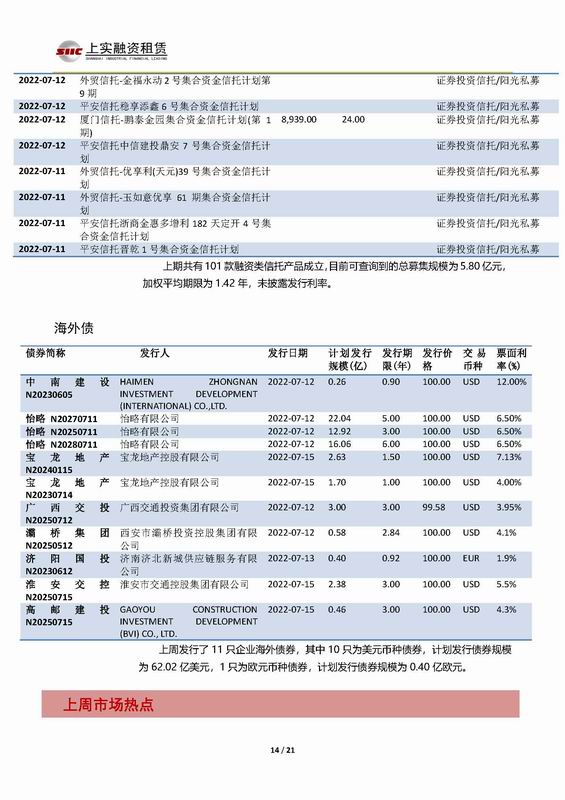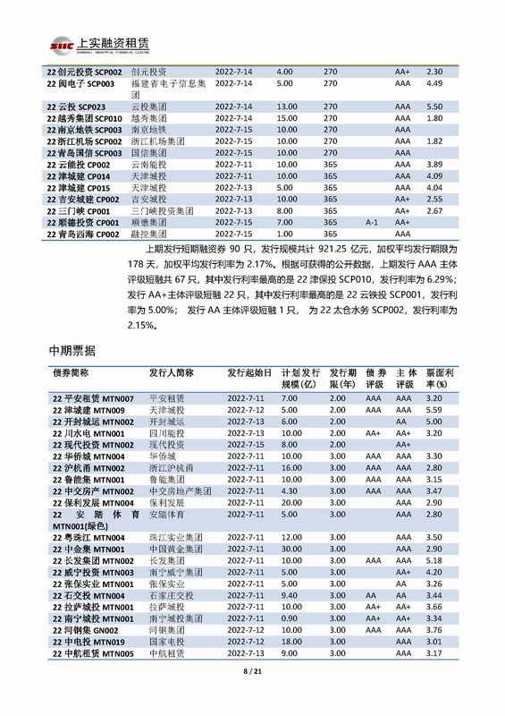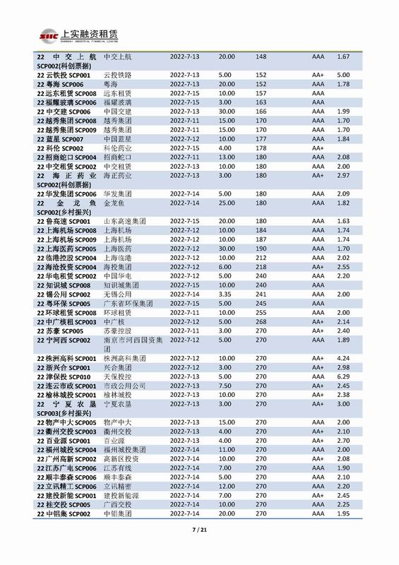 | 當(dāng)前位置:新聞中心 > 上實(shí)-融資工具周報(bào)2022.7.11-2022.7.15 | |||||