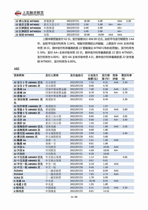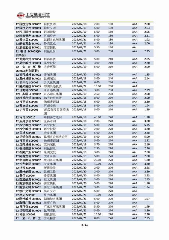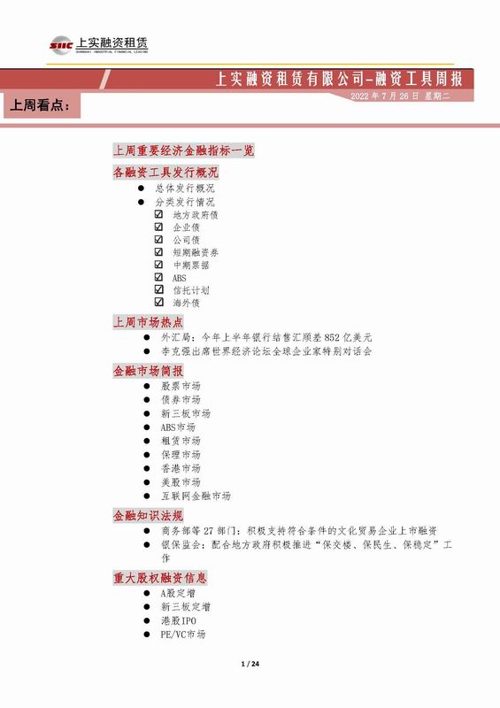 | 當(dāng)前位置:新聞中心 > 上實-融資工具周報2022.7.18-2022.7.22 | |||||