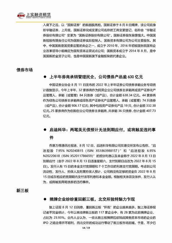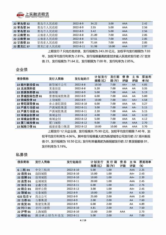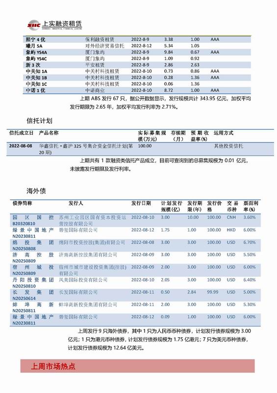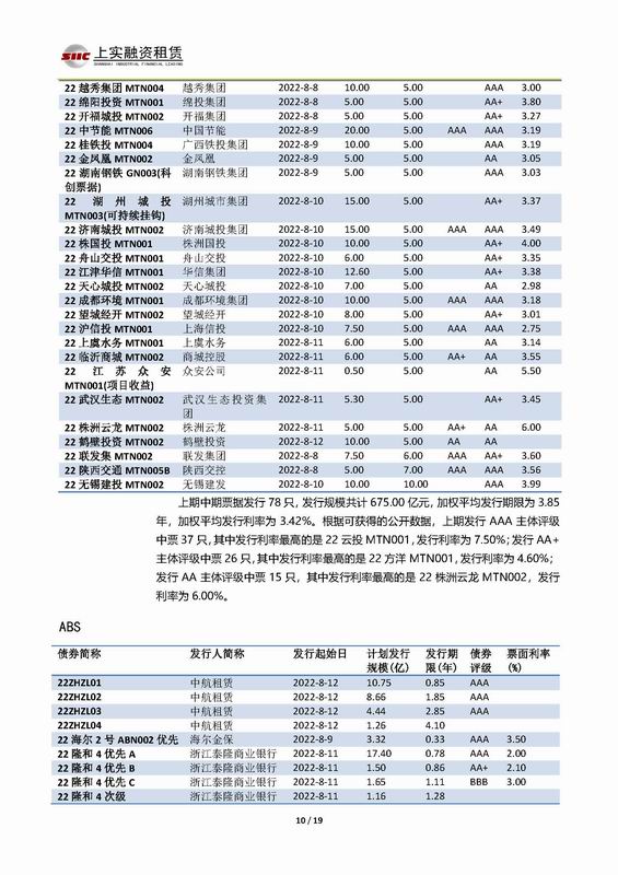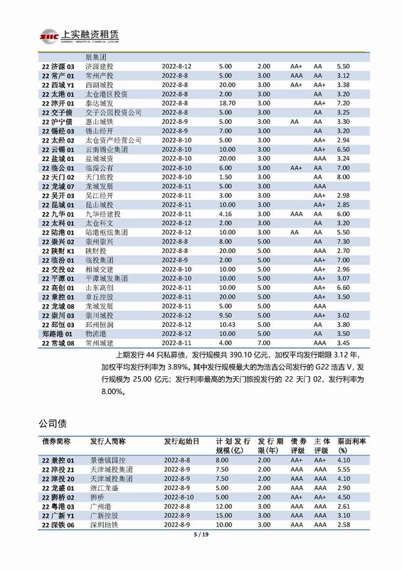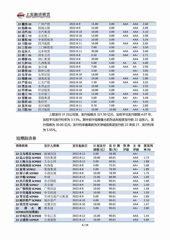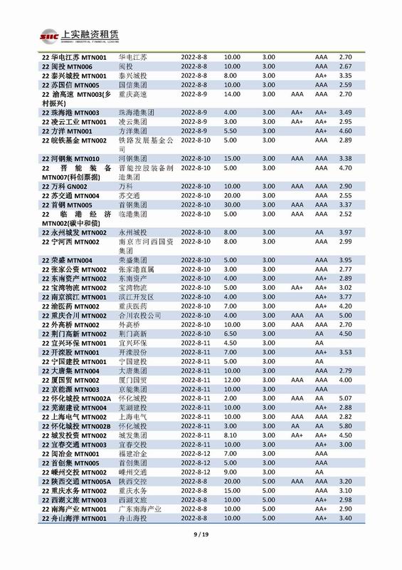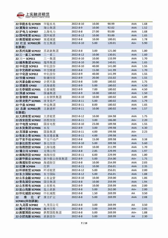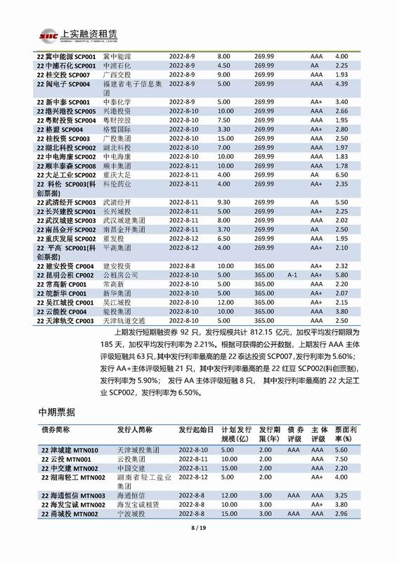 | 當(dāng)前位置:新聞中心 > 上實(shí)-融資工具周報(bào)2022.8.8-2022.8.12 | |||||
