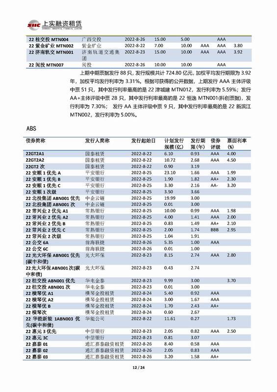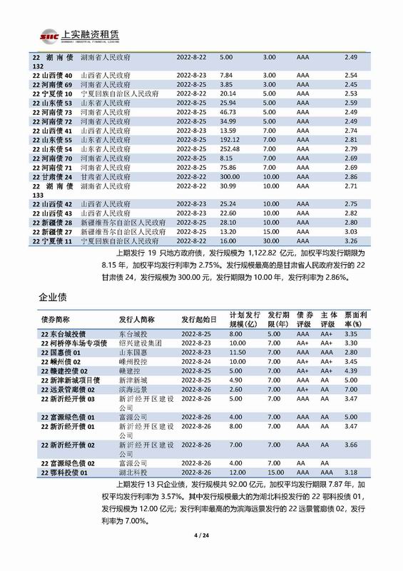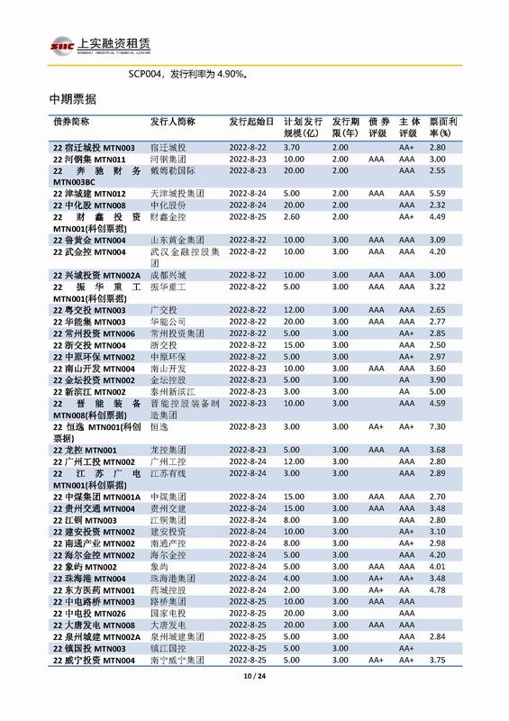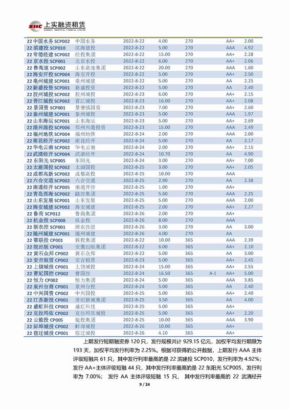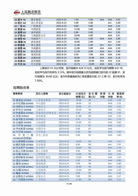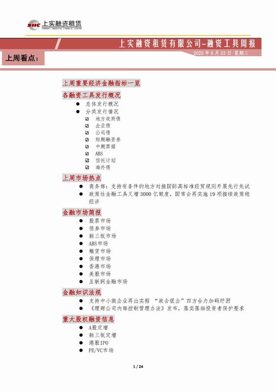 | 當(dāng)前位置:新聞中心 > 上實(shí)-融資工具周報(bào)2022.8.22-2022.8.26 | |||||