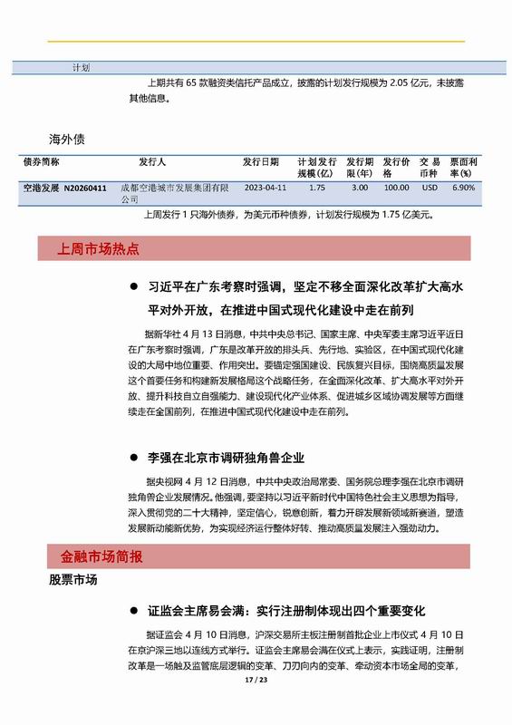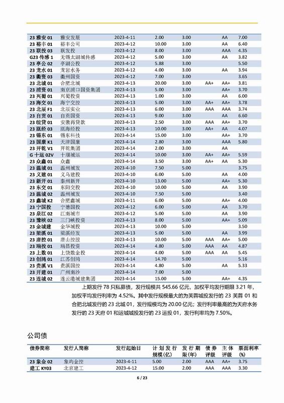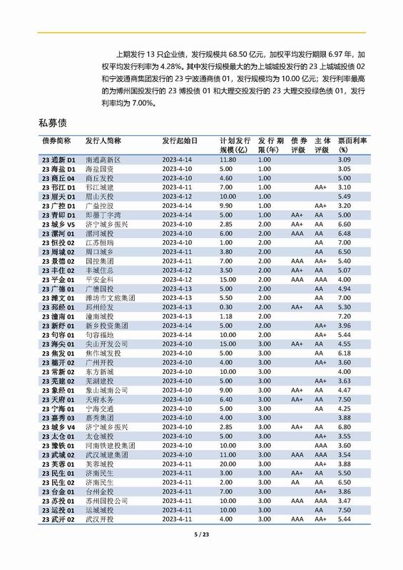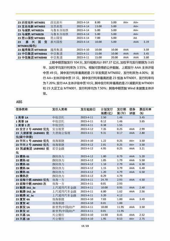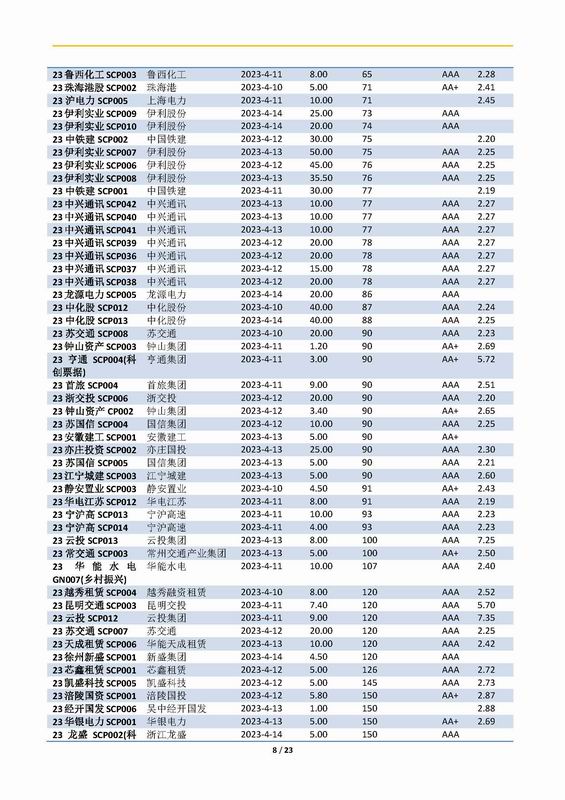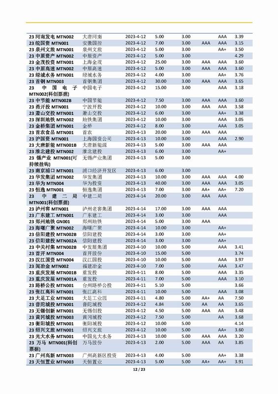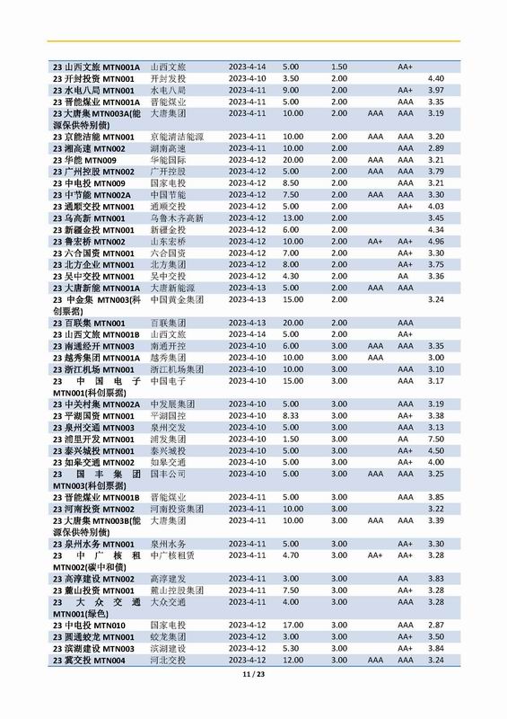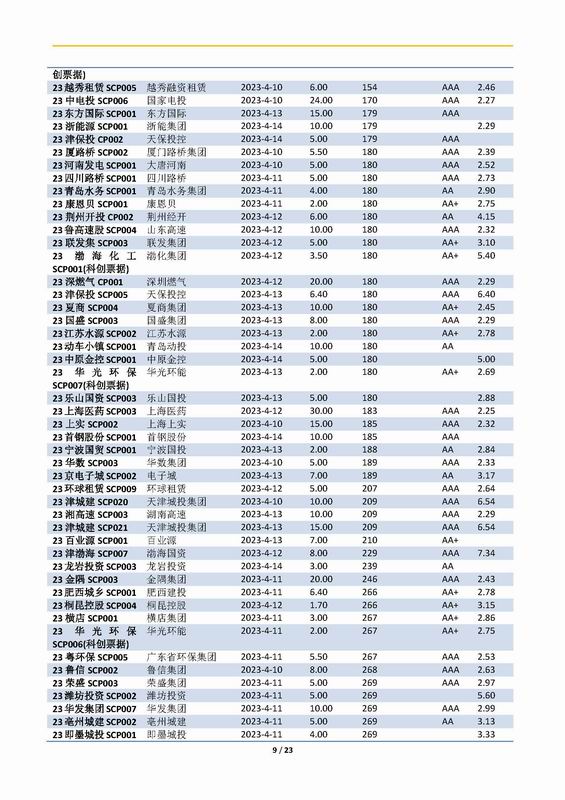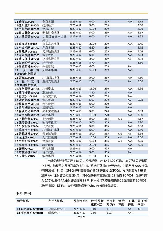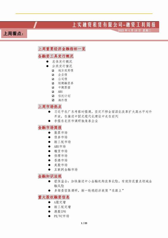 | 當前位置:新聞中心 > 上實-融資工具周報2023.4.10-2023.4.14 | |||||