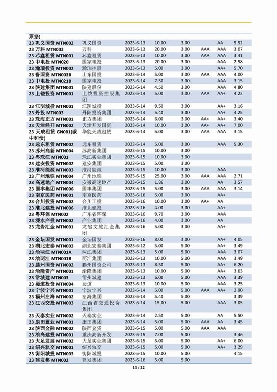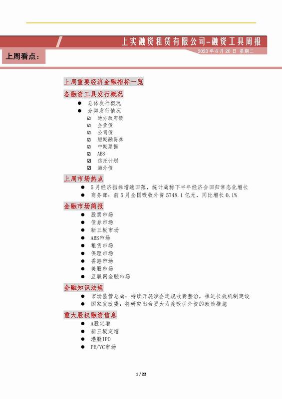| 當(dāng)前位置:新聞中心 > 上實(shí)-融資工具周報(bào)2023.6.12-2023.6.16 | |||||