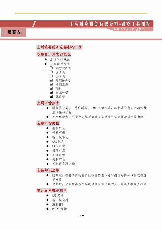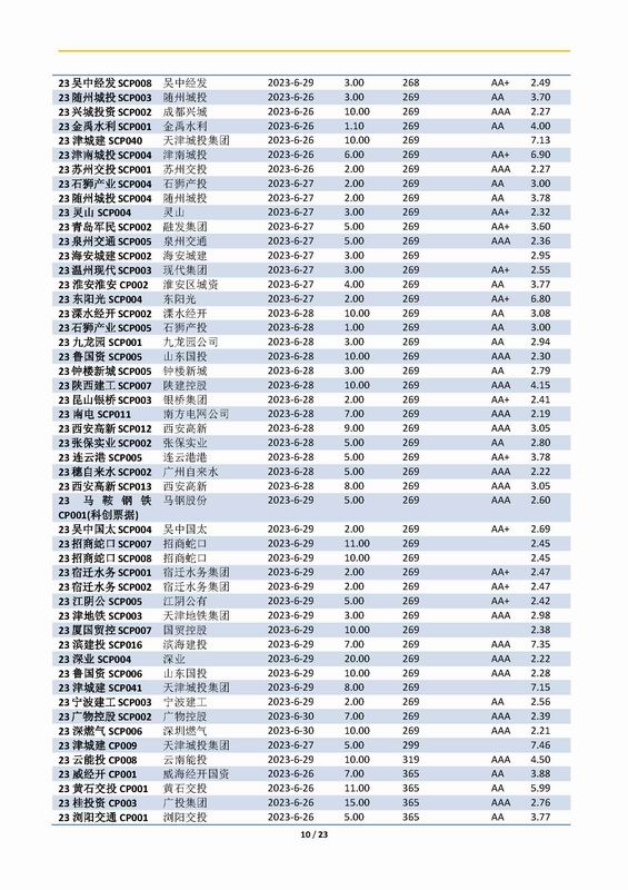 | 當前位置:新聞中心 > 上實-融資工具周報2023.6.26-2023.6.30 | |||||