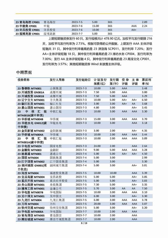 | 當(dāng)前位置:新聞中心 > 上實(shí)-融資工具周報2023.7.3-2023.7.7 | |||||