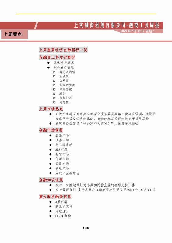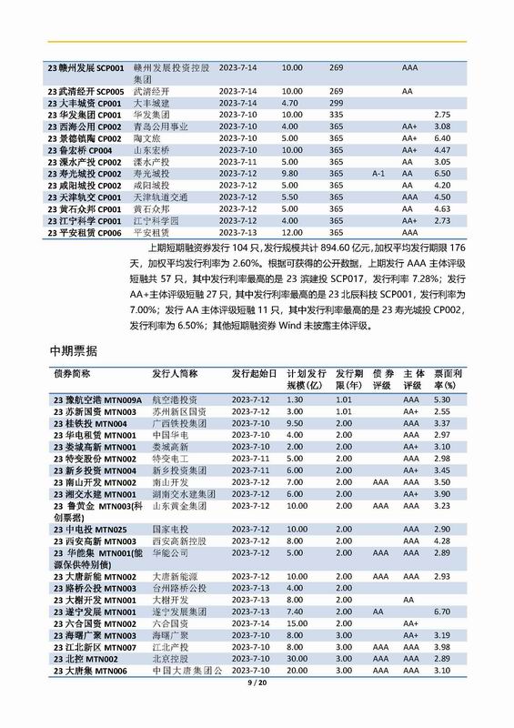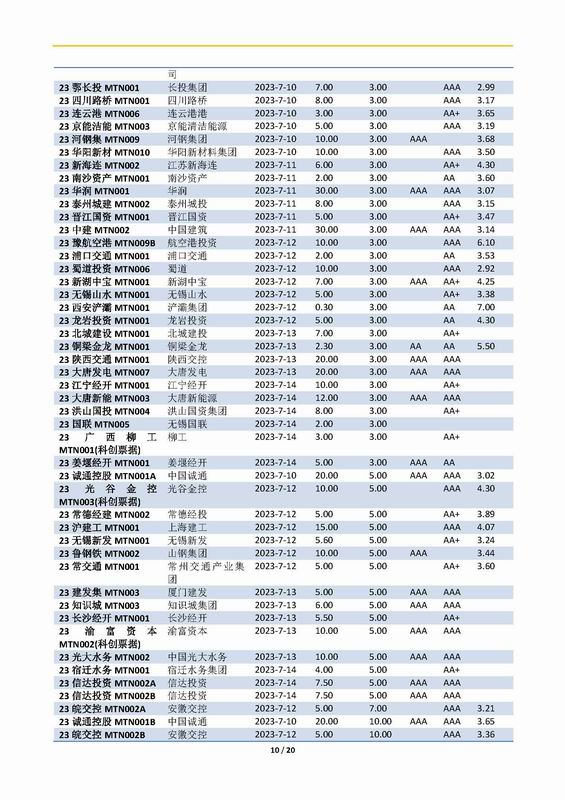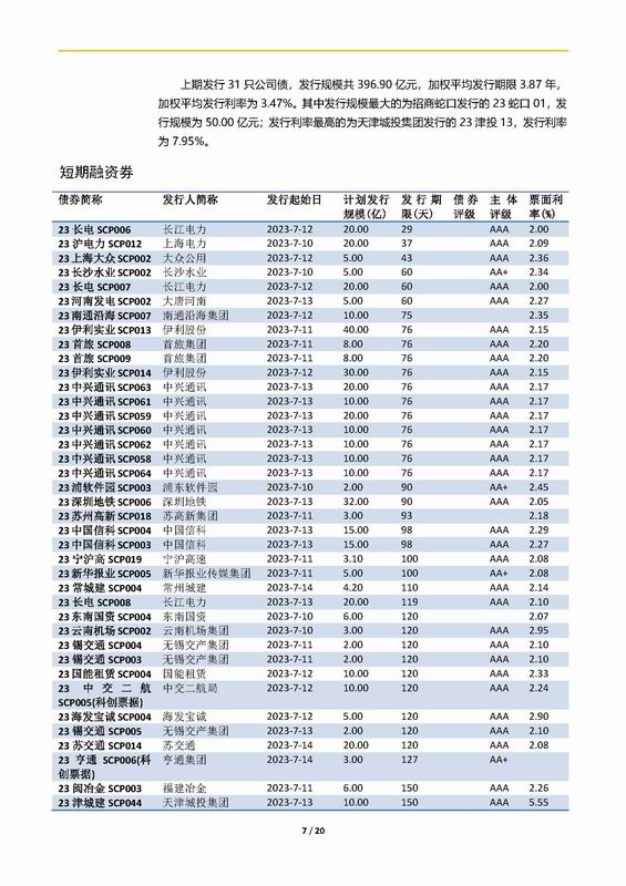 | 當(dāng)前位置:新聞中心 > 上實(shí)-融資工具周報(bào)2023.7.10-2023.7.14 | |||||